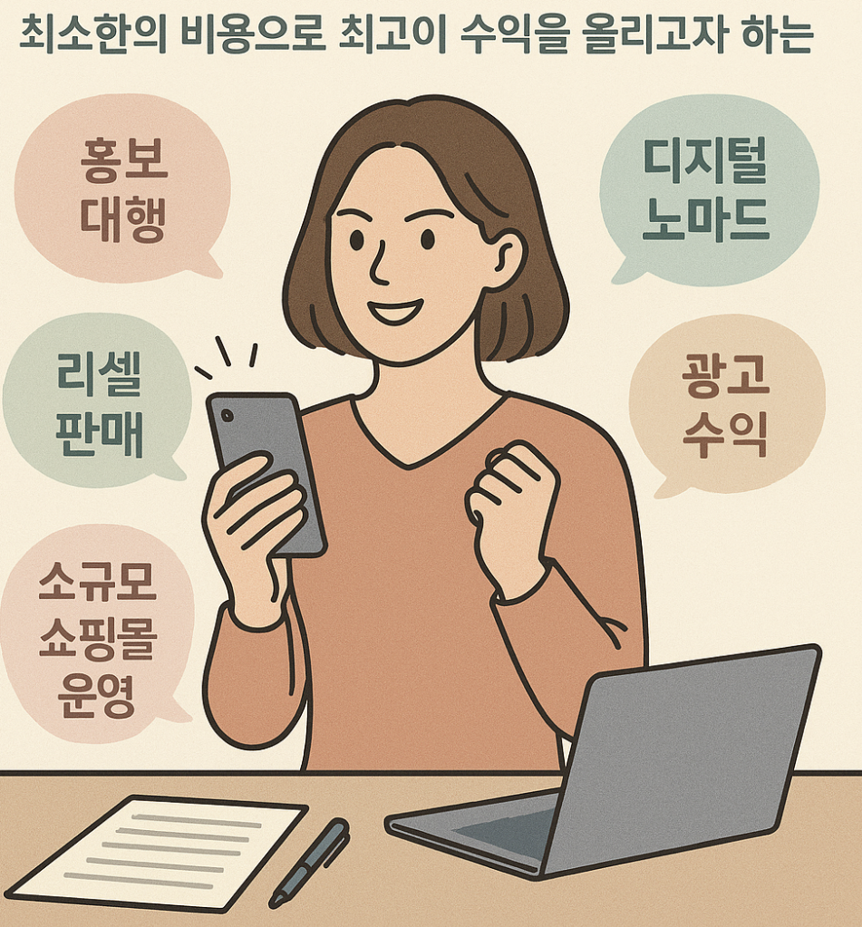 - **디지털 제품 판매** - 예를 들어, 전자책, 온라인 강의, 템플릿 등을 제작하여 판매할 수 있습니다.