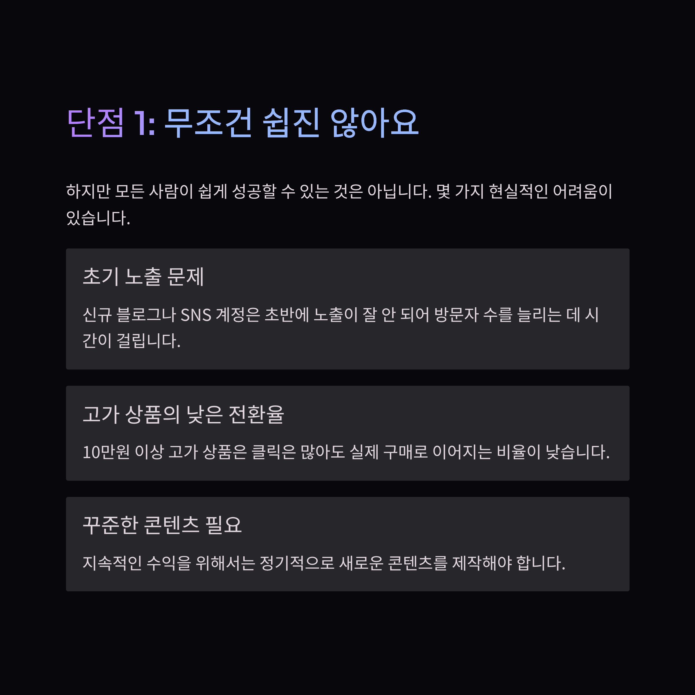 4. 주의해야 할 단점 – 무조건 쉽진 않다