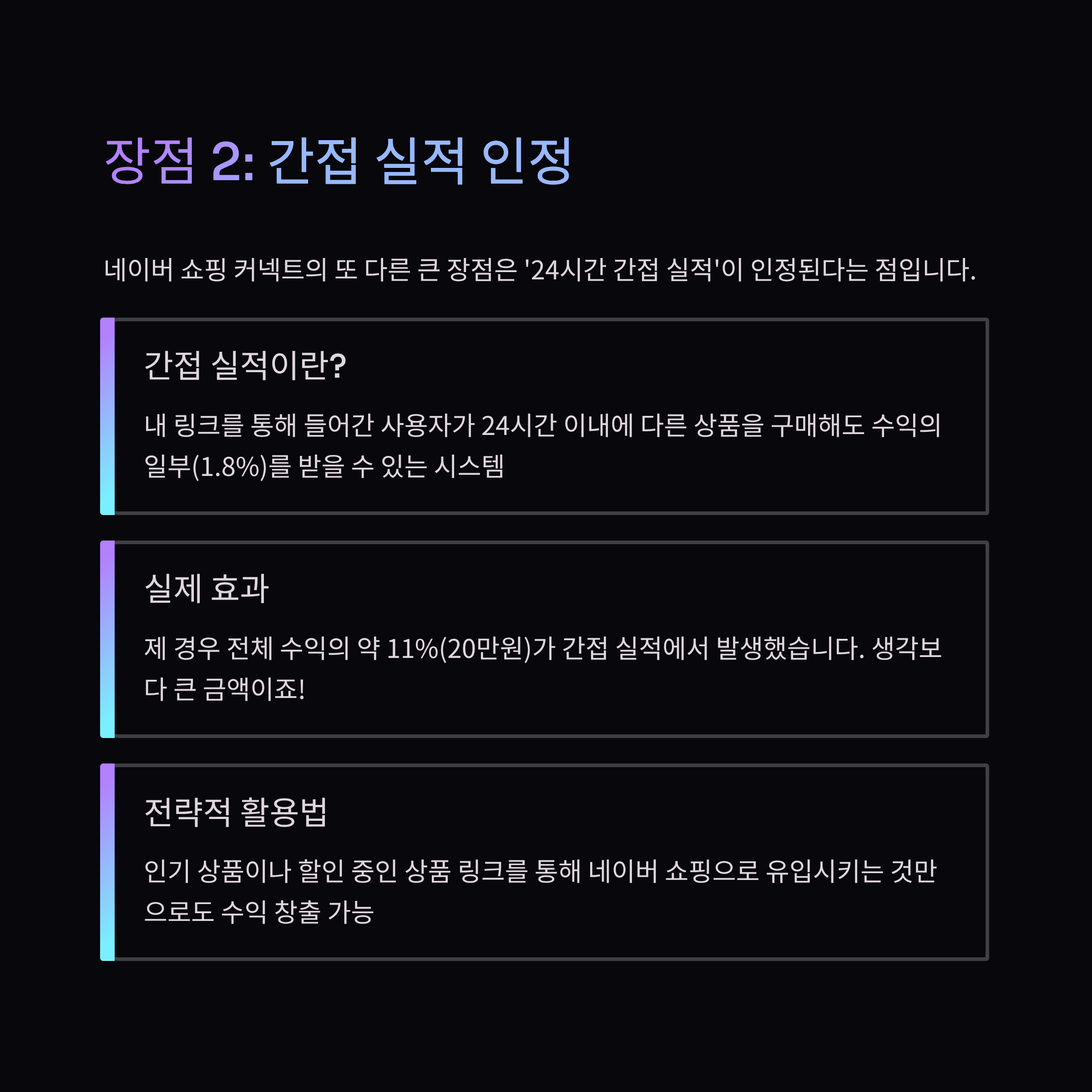 | 간접 실적 인정 | 있음(1.8%, 24시간) | 있음(0.5~1%, 24시간) |