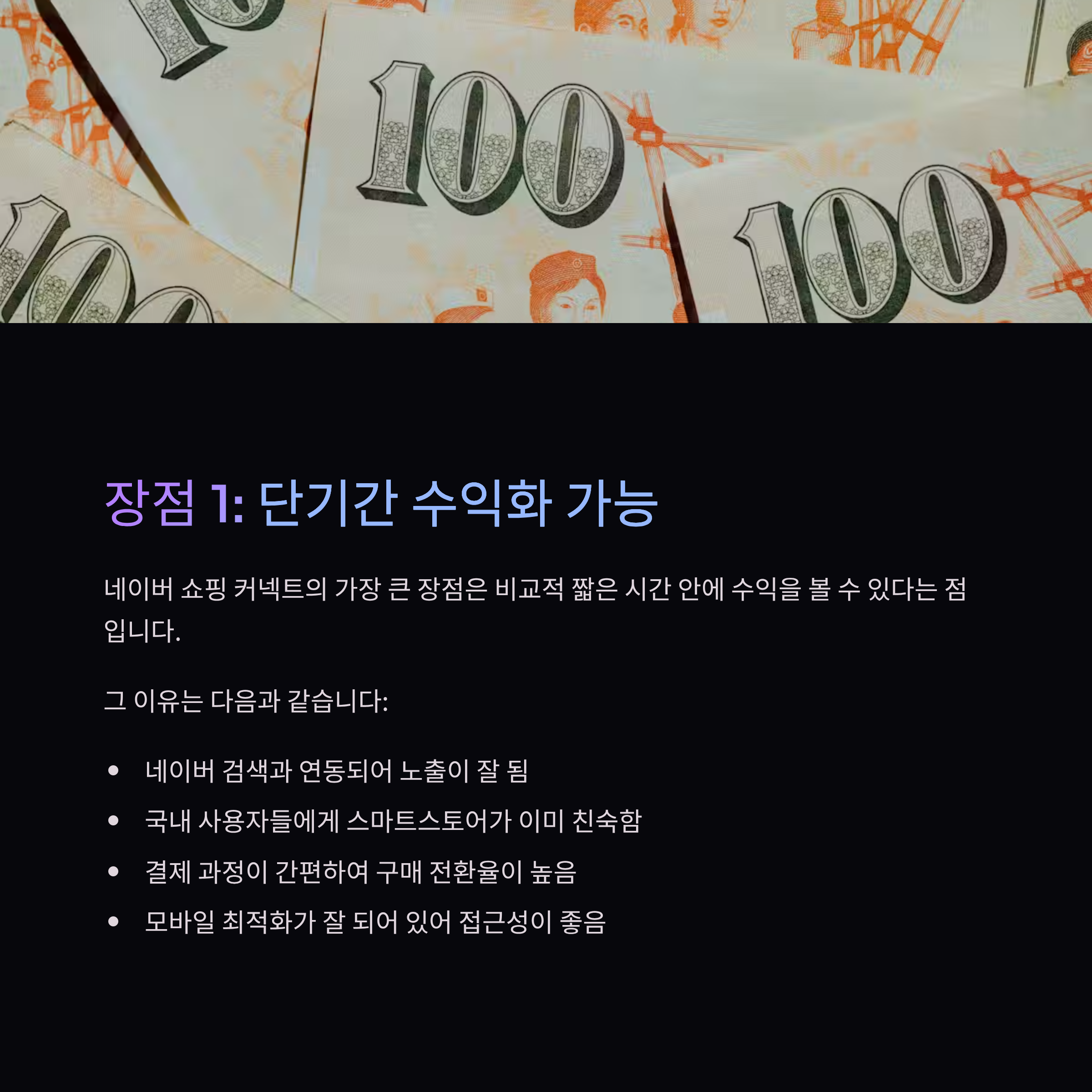 3. 제가 느낀 장점 – 단기간 수익화 가능