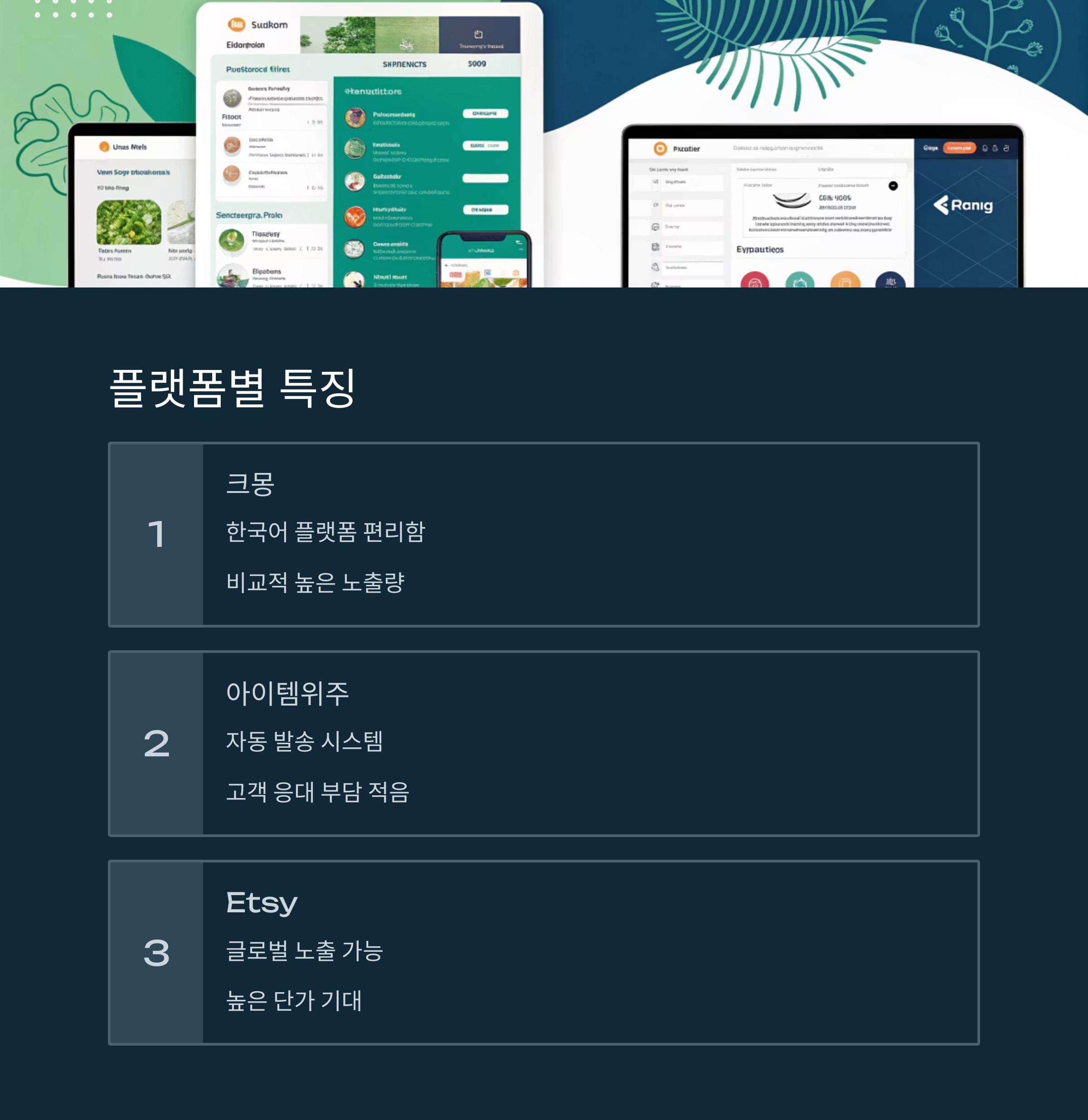 | Etsy | 약 10% | 글로벌 노출 | 응대 영어로 필요 | 해외 판매 가능성, 높은 단가 |