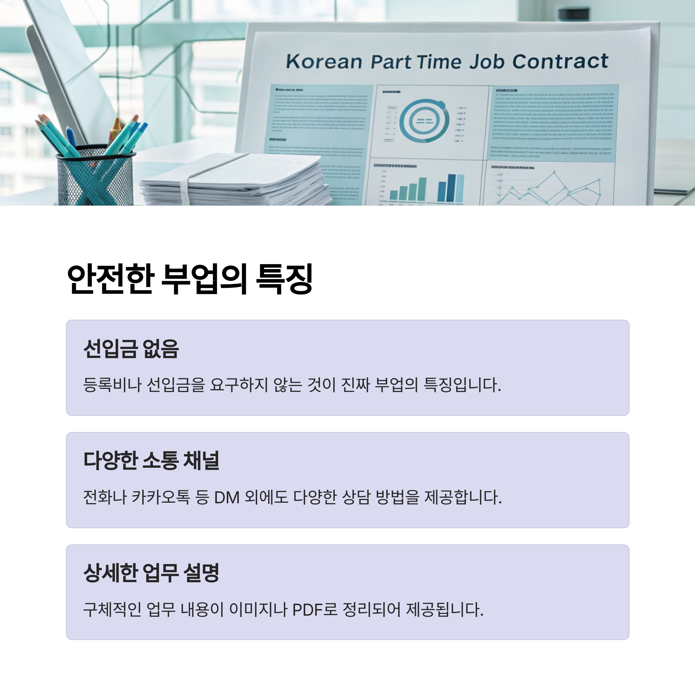 아래는 제가 실제 경험한 안전한 부업과 사기형 부업의 차이점 정리입니다.