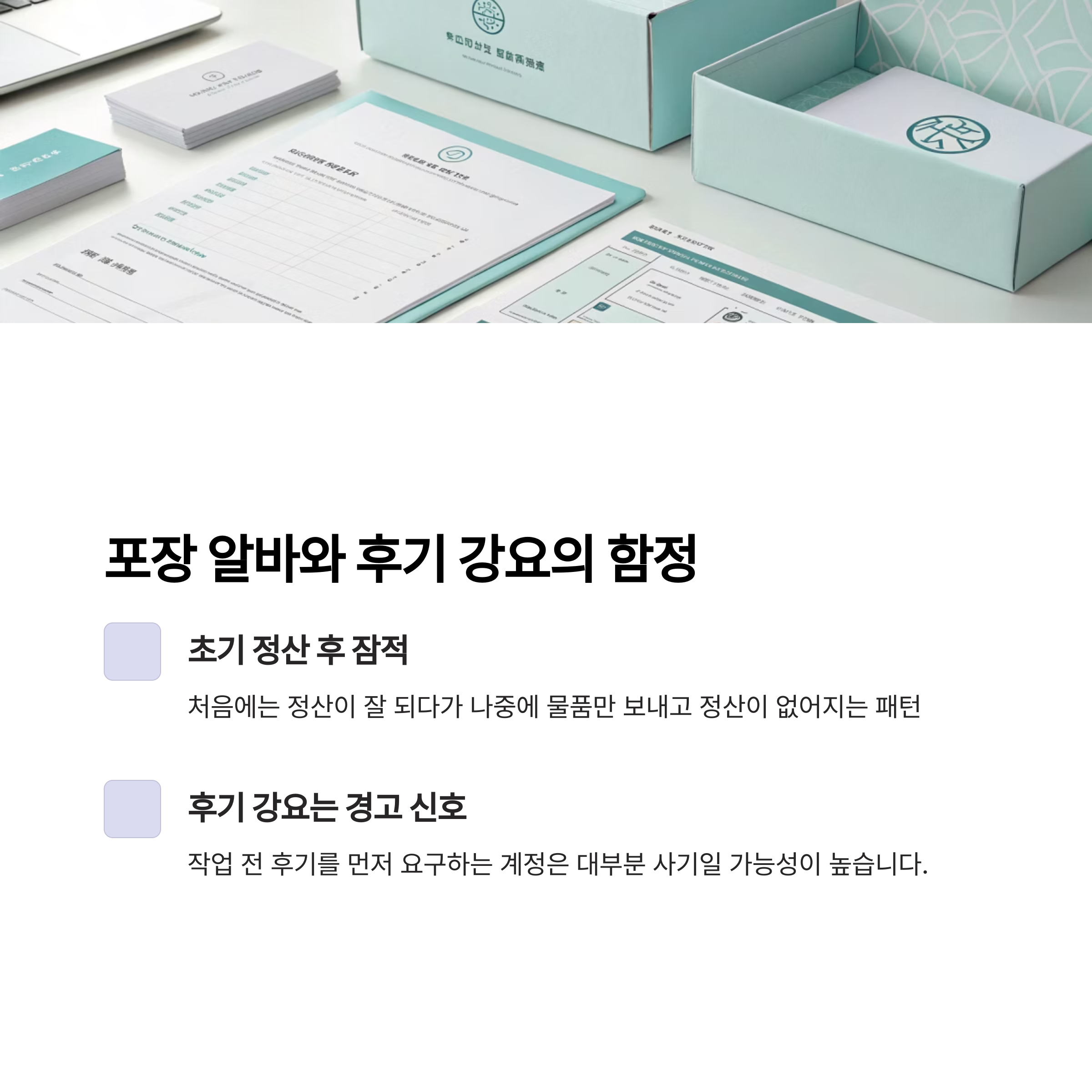 2. “포장 알바”인데 정산이 없다? 후기 강요는 무조건 의심!