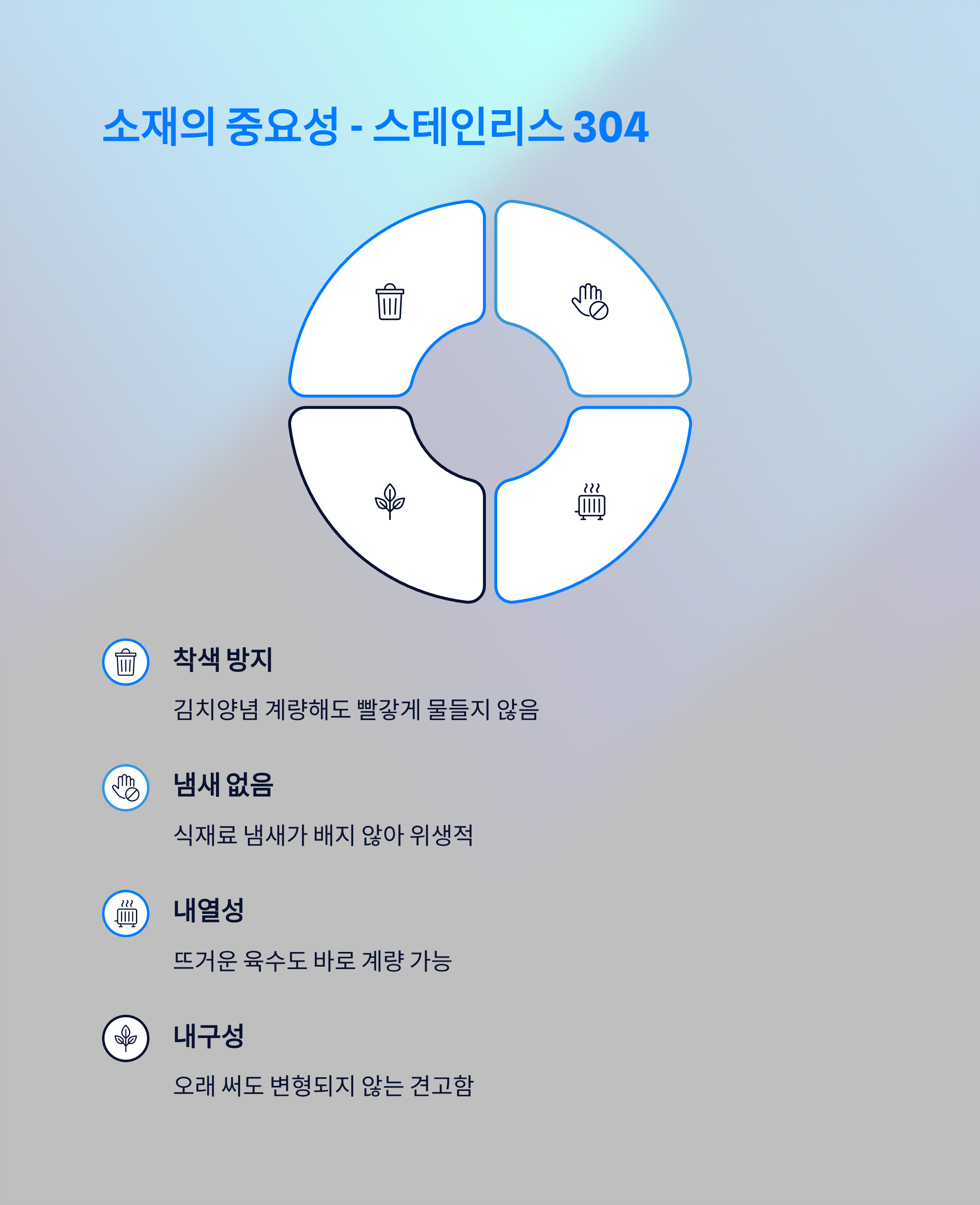 2. 스테인리스 304 소재, 위생과 내구성 차이