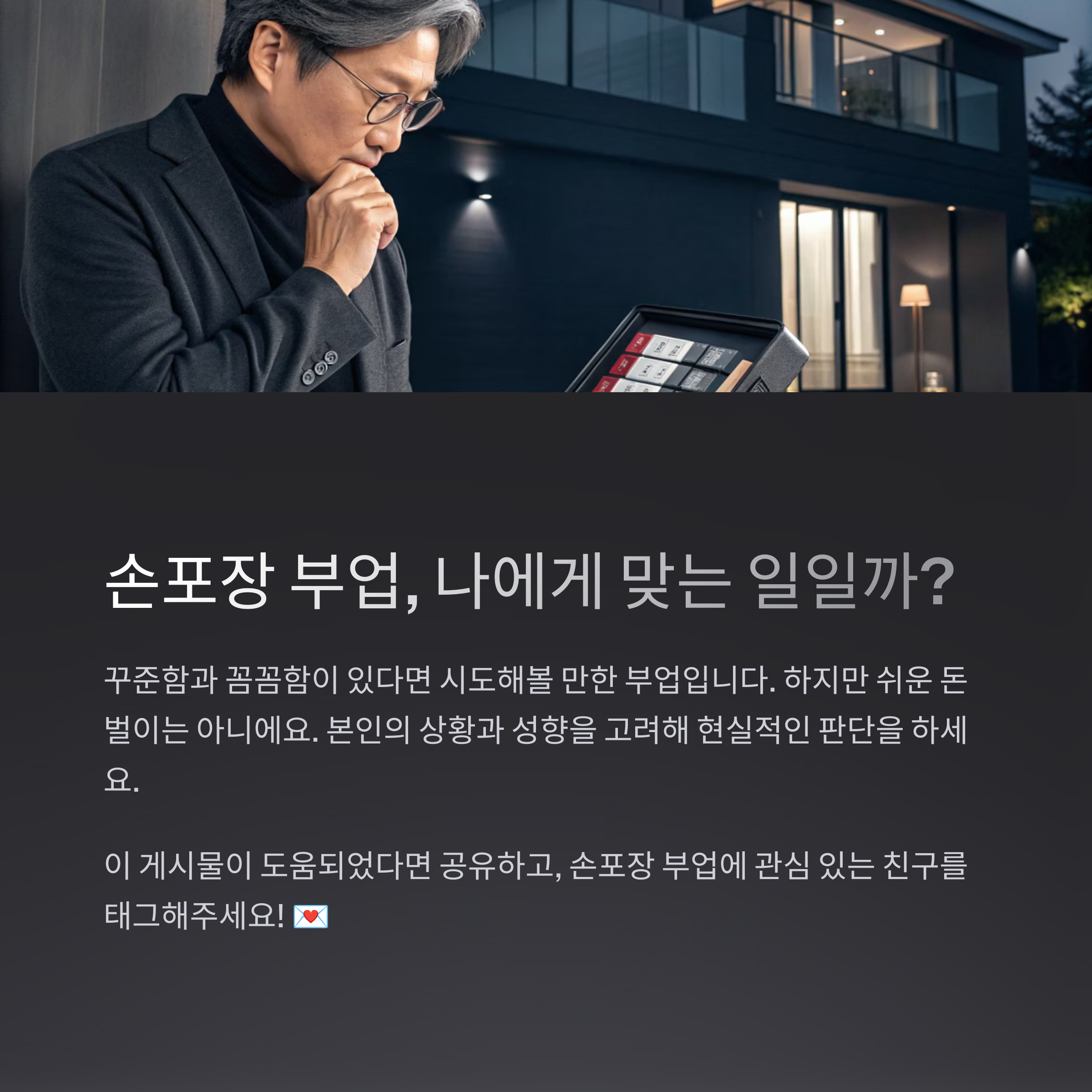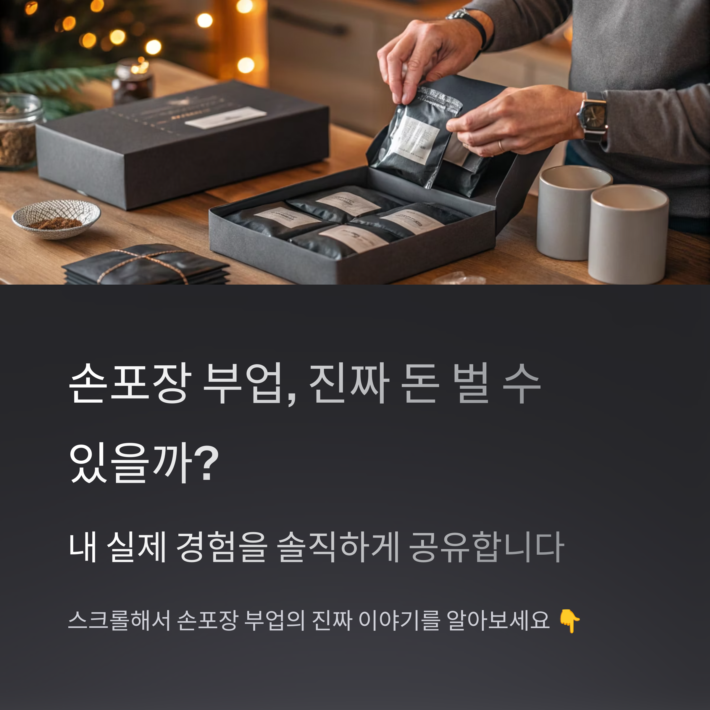 손포장 부업, 과연 실제로 돈이 될까요? 인스타그램이나 블로그에서 자주 보이는 후기들, 진짜일까요? 저도 처음엔 반신반의하며 시작했지만, 직접 해보니 알겠더라고요. 이 글에서는 제가 직접 경험한 손포장 부업의 현실을 솔직하게 공유하려고 합니다. 시작 전 궁금했던 점들, 실제로 해보면서 느낀 점들, 그리고 수익까지 모두 담았습니다. 혹시 손포장 부업에 관심 있으신가요? 그렇다면 이 글을 끝까지 읽어보세요. 실제 경험을 바탕으로 한 정보들이 여러분께 도움이 될 거예요.