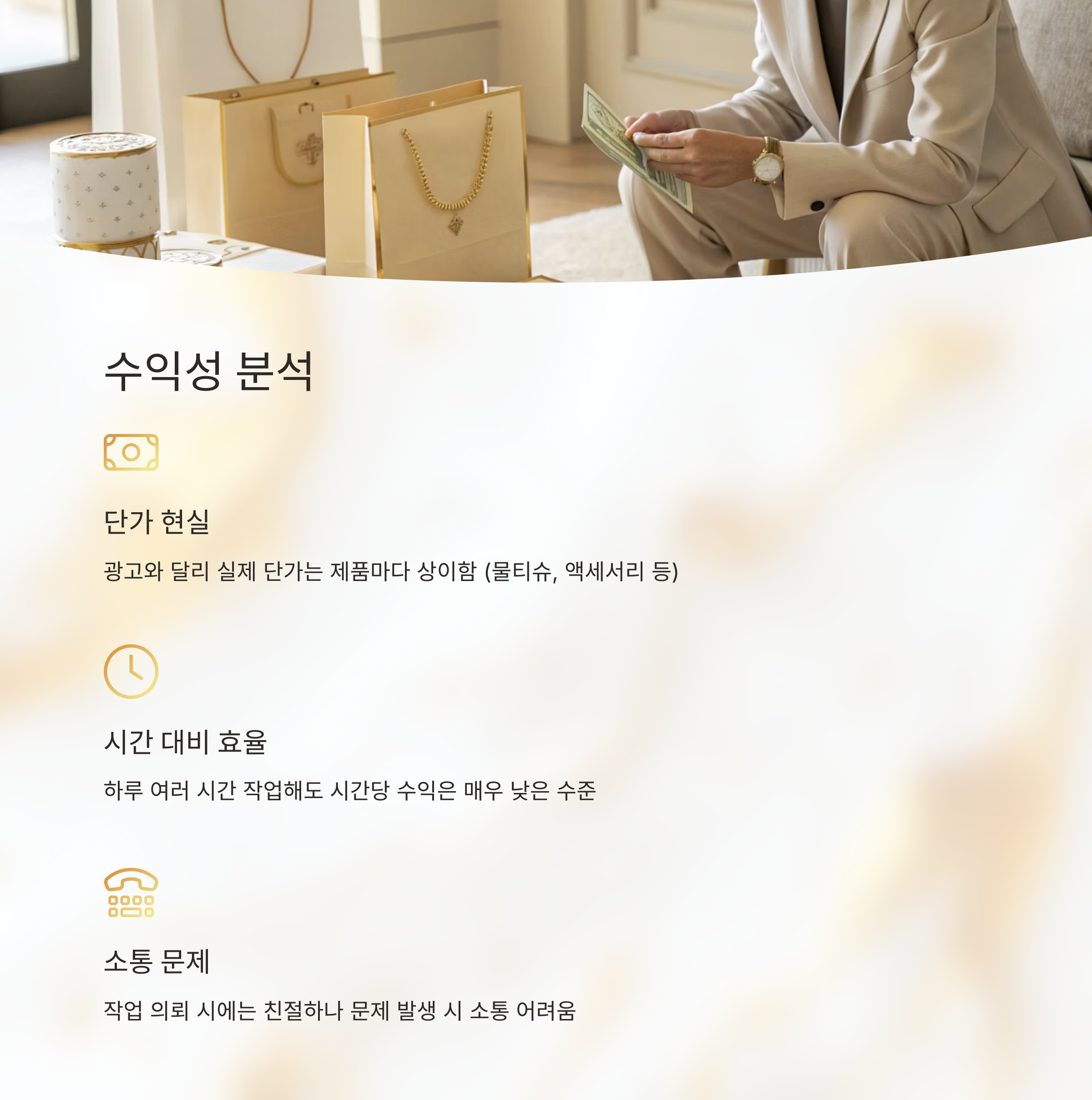 웃긴 건 뭐냐면요, 택배 받을 때는 되게 정중하게 연락 오는데, 반품이나 추가 질문할 때는 답장 속도가 확 줄어요 ㅋㅋ. 감성팔이 광고는 ‘집에서 편하게 돈 버세요~’인데, 실제는 허리와 손목의 대가였습니다.