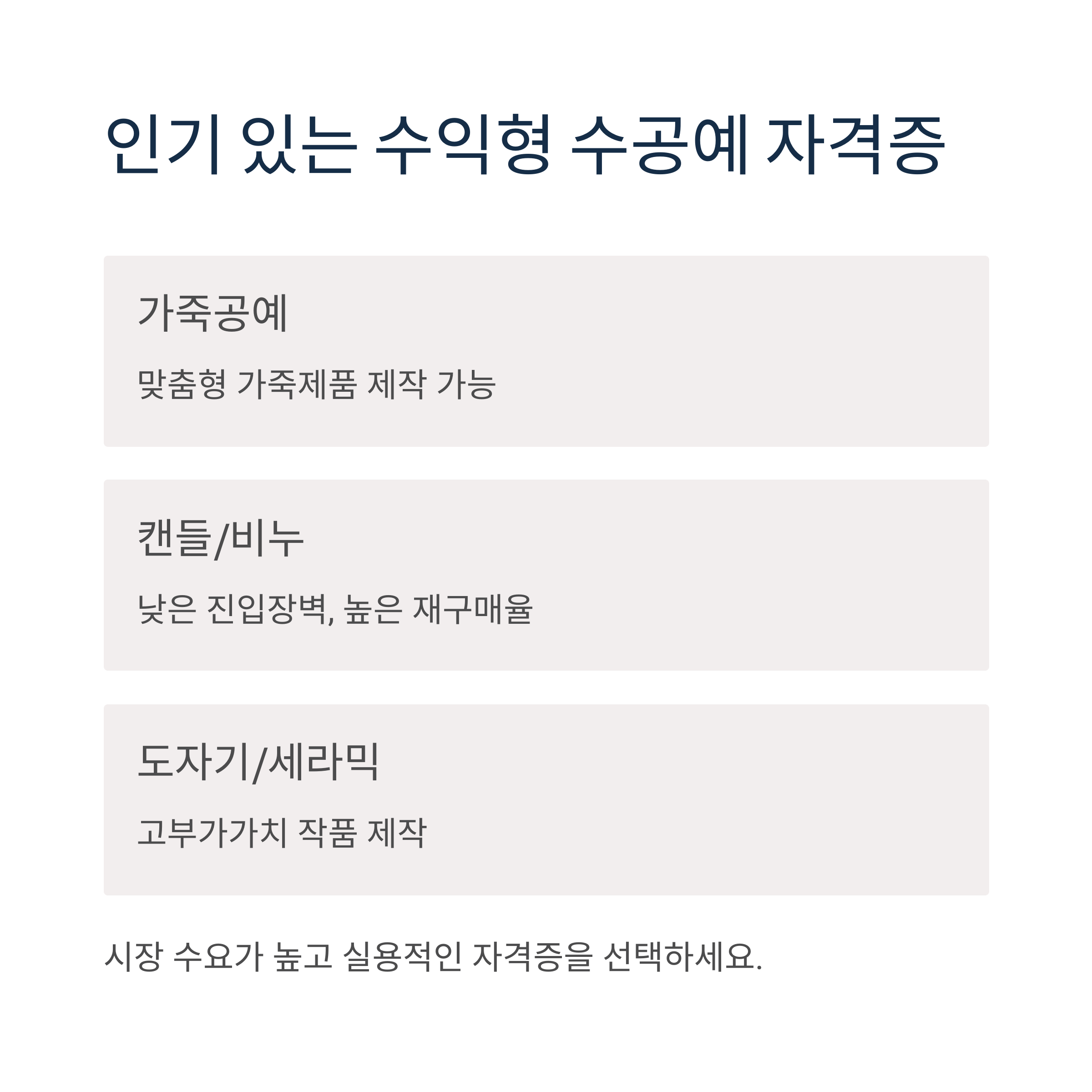 다양한 수공예 자격증 중에서도 특히 수익성이 높은 분야는 다음과 같습니다: