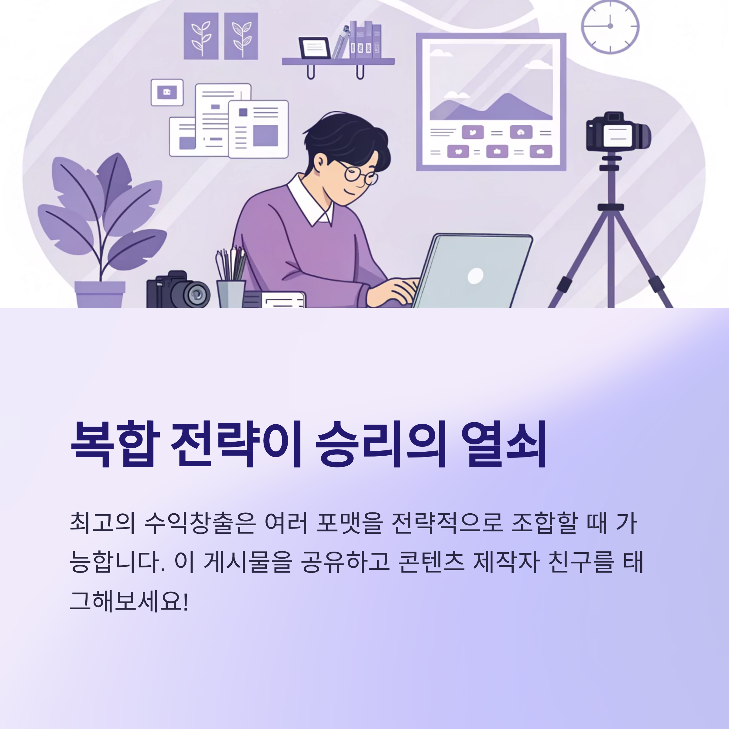 | 영상 콘텐츠 | 광고수익, 스폰서십, 유료강의 연결 | 높은 몰입감, 신뢰도 상승 |