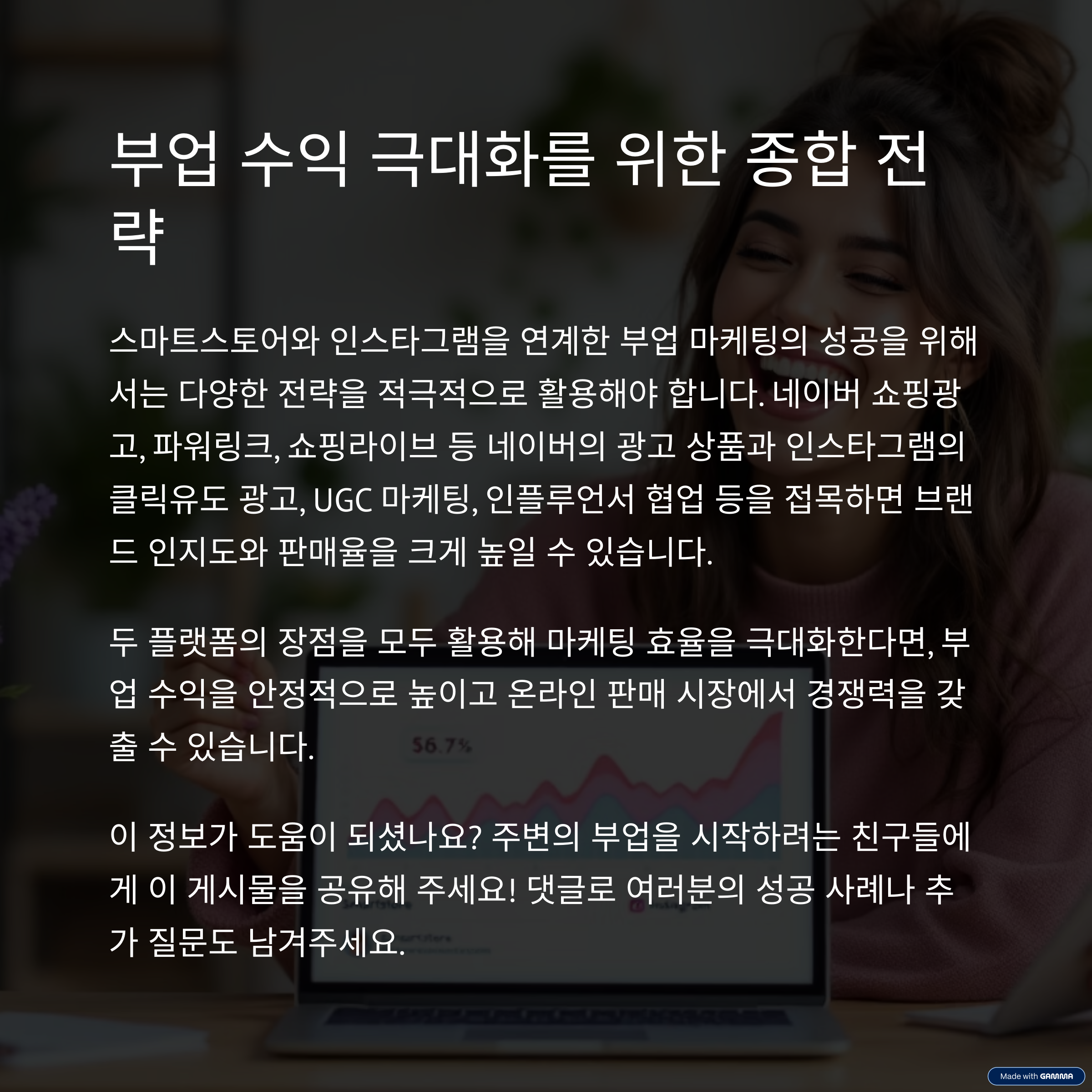 스마트스토어와 인스타그램을 연계하여 어떻게 부업 수익을 극대화할 수 있을까요?