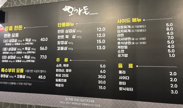 "천안불당동에서 고깃집을 찾고 있다면 오가돈을 추천합니다. 가격도 저렴하고, 고기의 질도 최고 수준입니다. 여러 번 방문하고 싶네요."