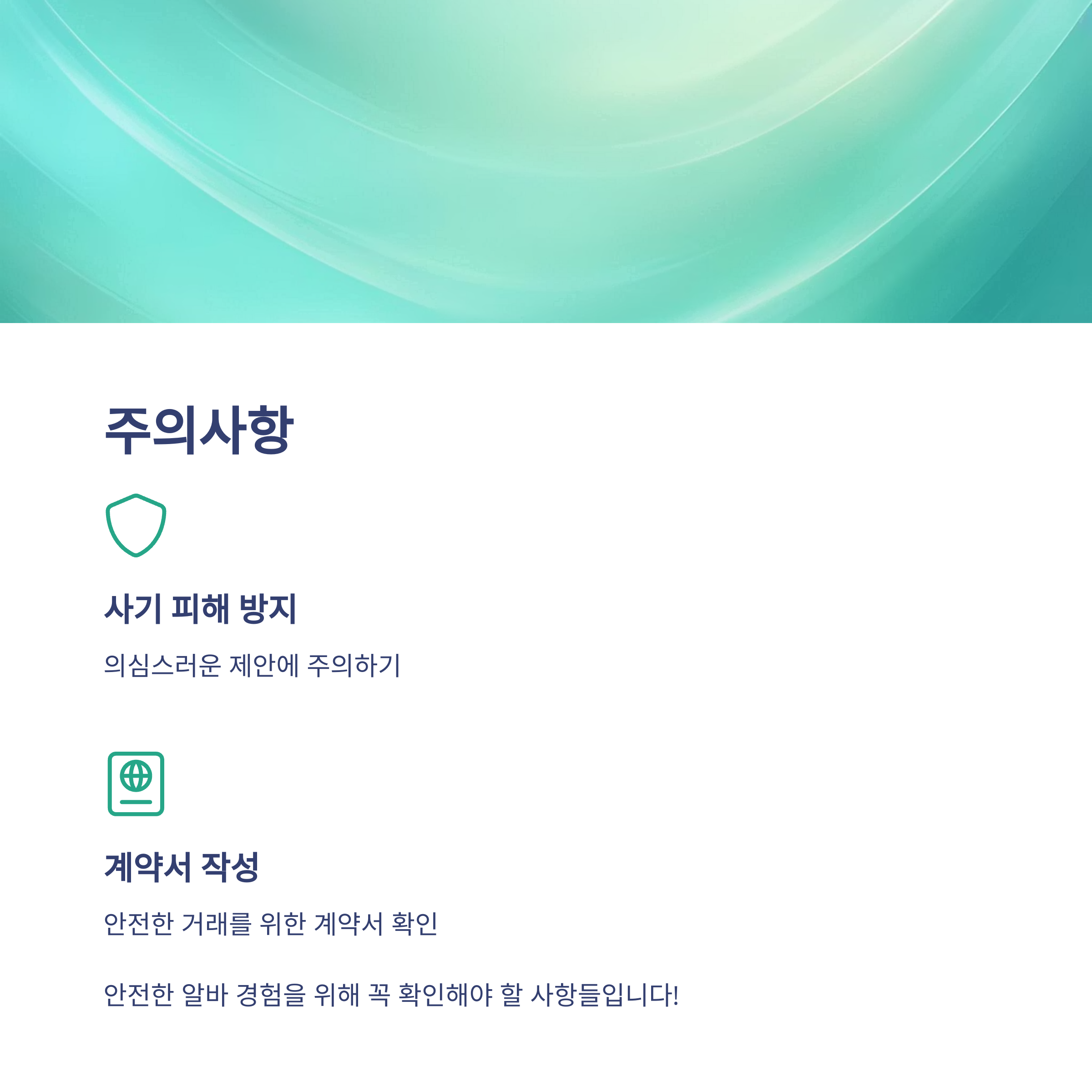 - 알바의 조건을 명확히 확인하고, 가능하면 계약서를 작성하는 것이 좋습니다.