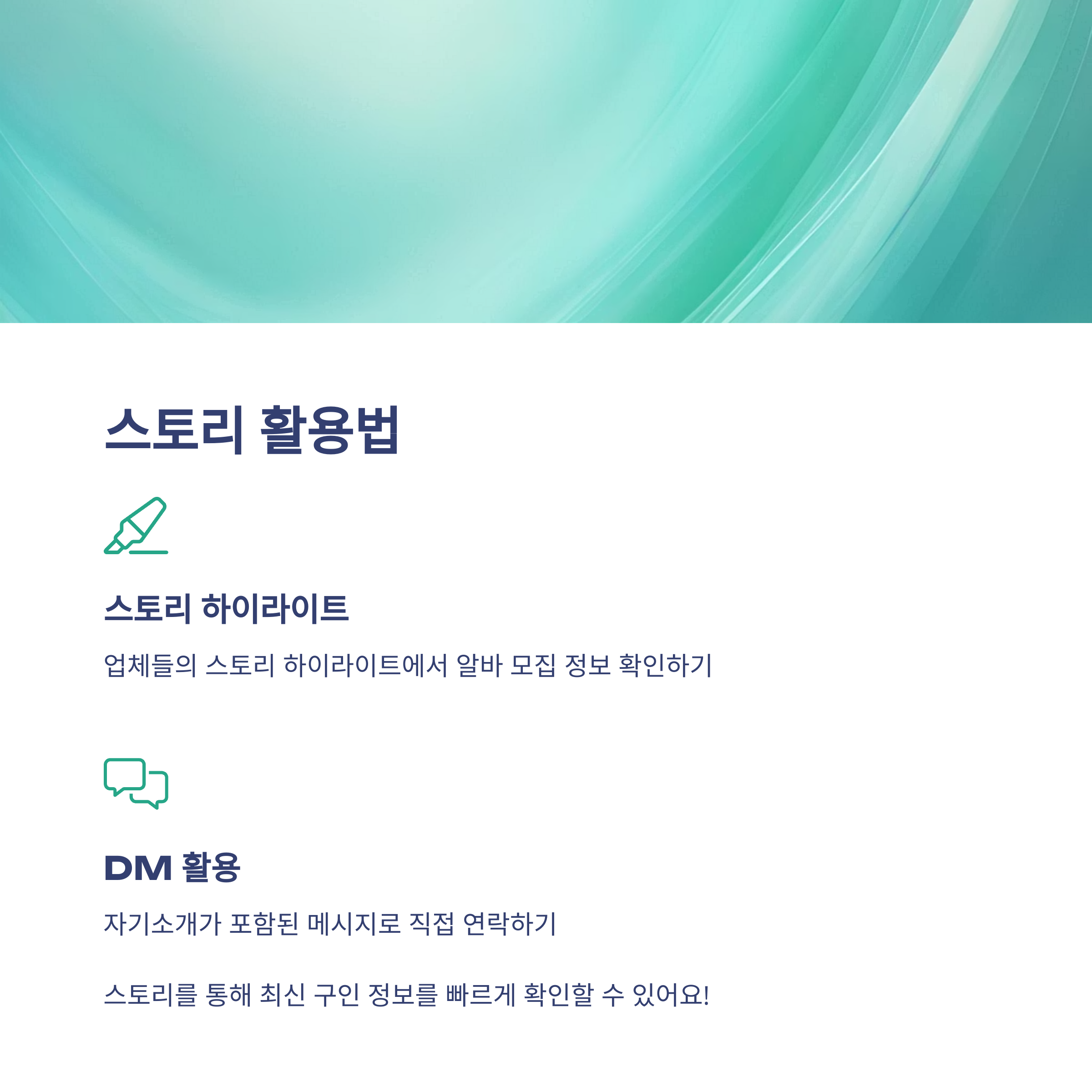 많은 사람들이 인스타그램 피드를 통해 정보를 찾지만, 사실 스토리에도 유용한 정보들이 많습니다. 특히 ‘스토리 하이라이트’를 잘 활용하는 업체들도 많거든요. 저는 포장 알바를 구할 때, 많은 업체들이 알바 모집을 스토리 하이라이트에 올리는 것을 보고 해당 게시물을 스크린샷으로 저장한 후, 바로 DM(다이렉트 메시지)을 보내면 빠르게 반응이 오더라고요.