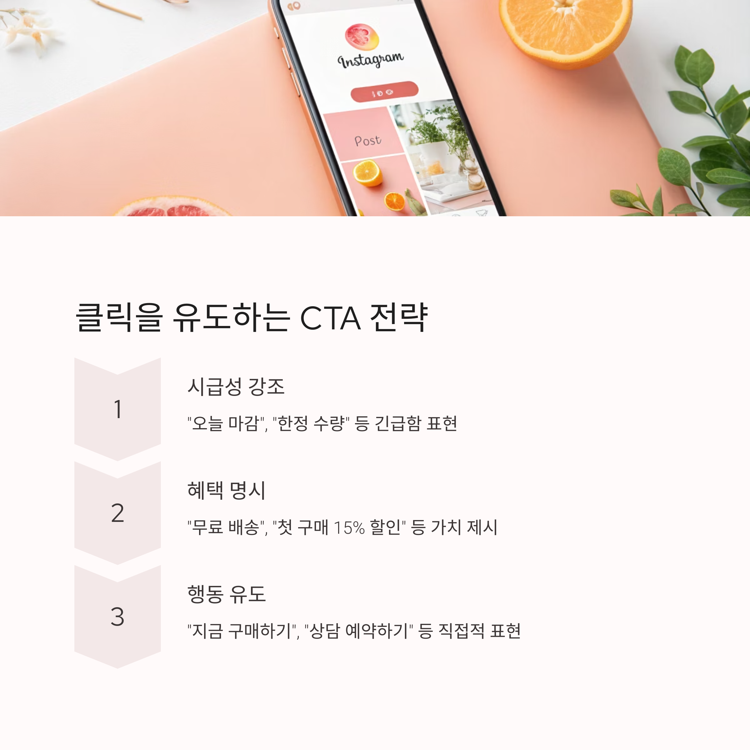 좋은 콘텐츠라도 '행동 유도'가 없으면 소비자는 반응하지 않습니다. 명확한 CTA를 반드시 포함하세요.