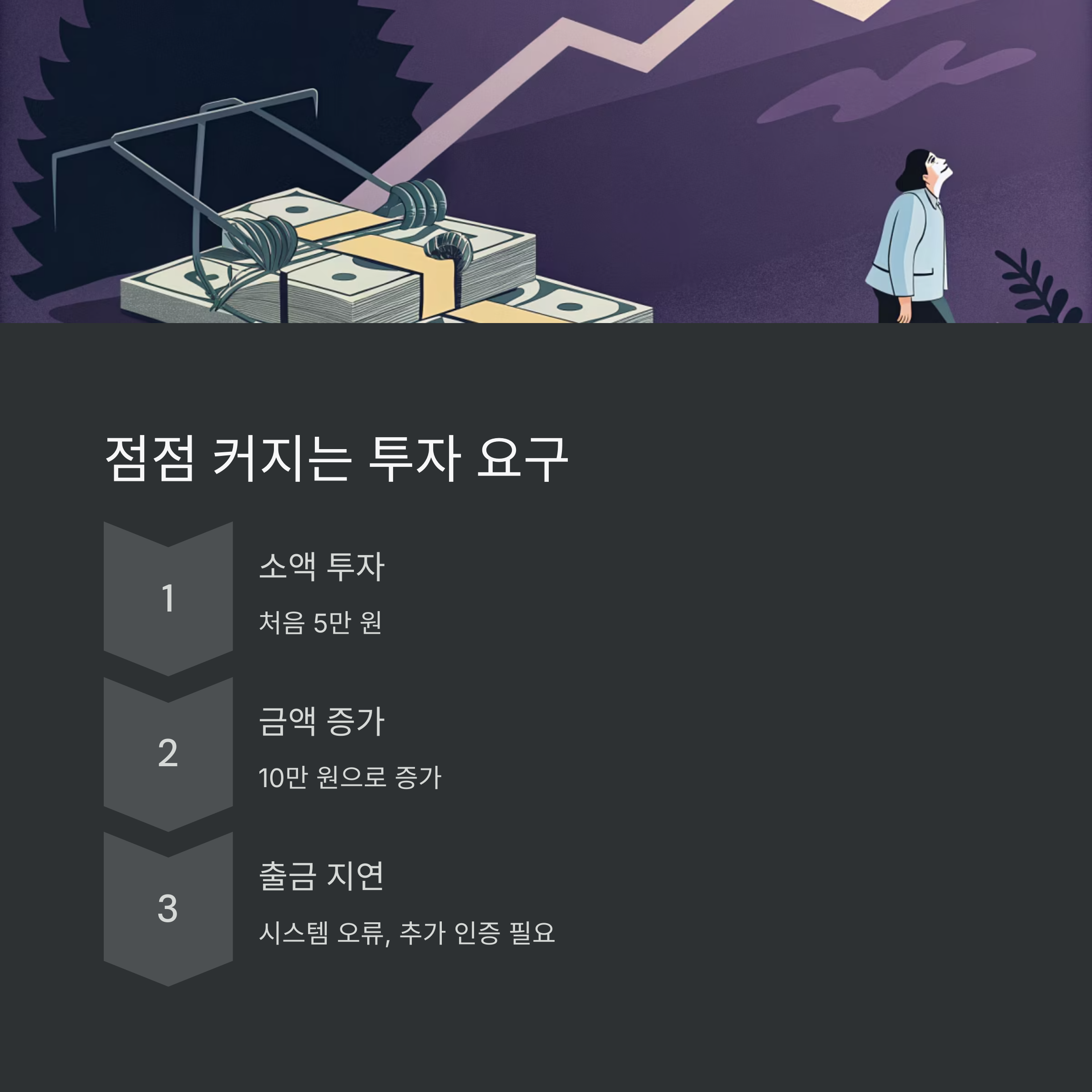 | 3단계 | 출금 지연 | '시스템 오류', '추가 인증' 등을 이유로 출금 미룸 |