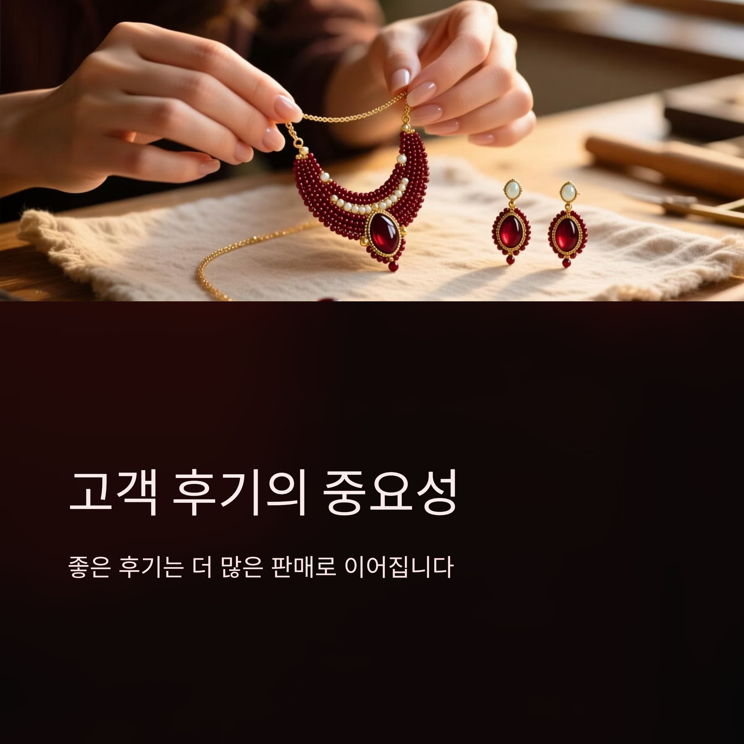 저는 자세한 설명과 꾸준한 사진 업로드로 제 제품을 더욱 돋보이게 했어요. 그리고 고객이 구매 후 피드백을 남겨주면, 그것을 후기로 활용해 더 많은 사람들에게 제 제품을 알리게 됐습니다. 이런 상호작용은 저에게 더 큰 동기부여가 되었어요.