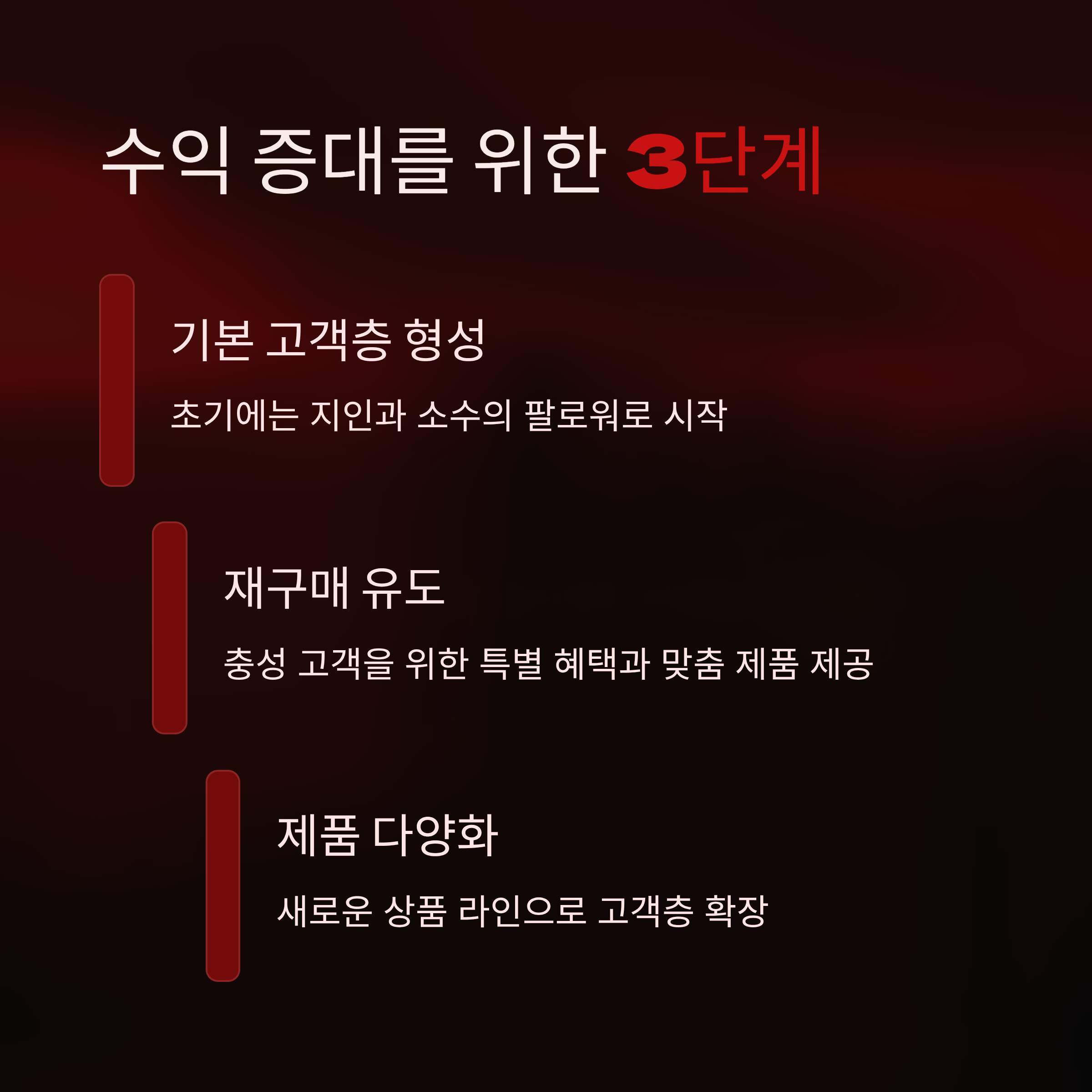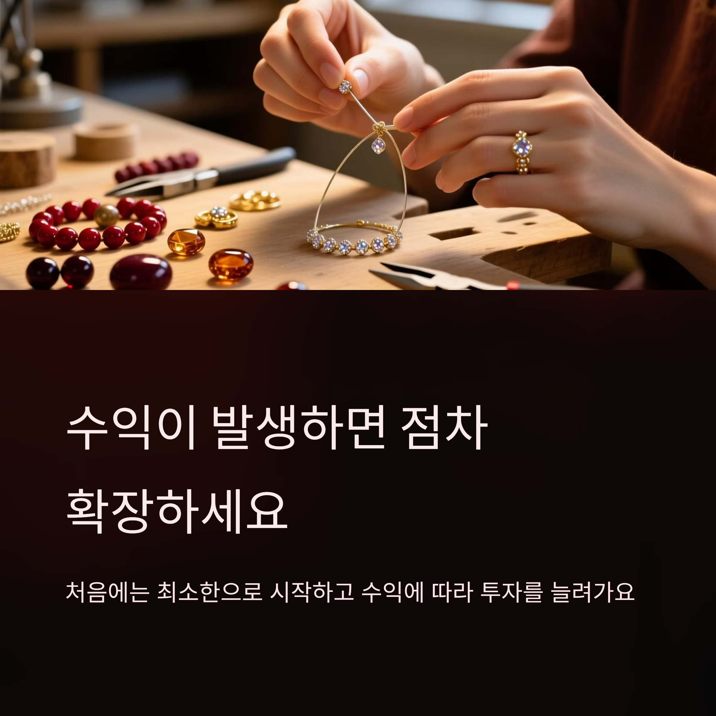 저는 작은 도구들만으로 시작해서 초기 투자비용을 거의 들이지 않았고, 수익이 발생하기 시작하면서 점차 재료를 추가하고 품질을 높여갔습니다. 인스타그램을 통해 판매하는 과정에서 수익이 올라가면서, 꾸준히 수익을 증가시킬 수 있었습니다.