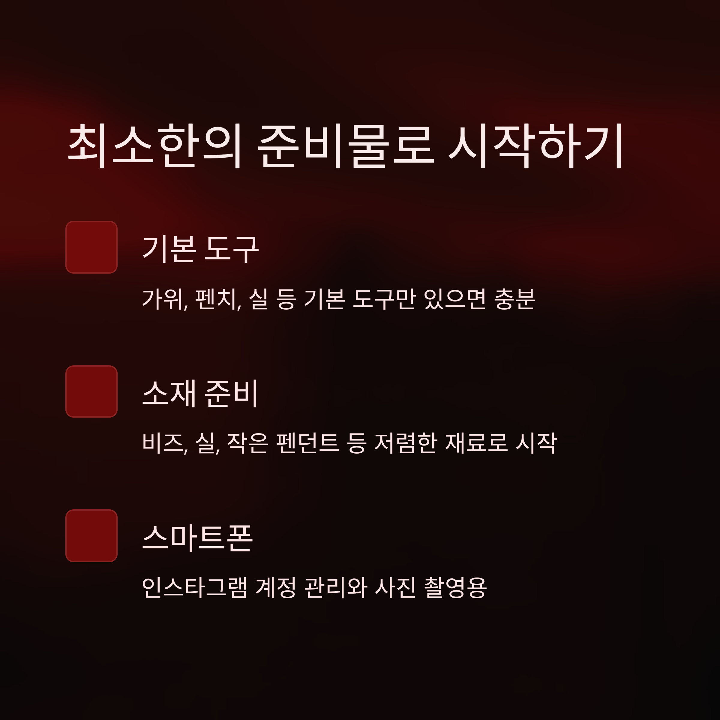 인스타그램 손재주 부업을 시작할 때, 큰 자본을 들이지 않고도 시작할 수 있다는 점이 매력적이었습니다. 제 경우에는 핸드메이드 악세사리를 만들 때, 소재와 도구를 처음에 최소한으로 준비했습니다. 비즈, 실, 작은 펜던트 등만 있으면 충분히 시작할 수 있었죠.