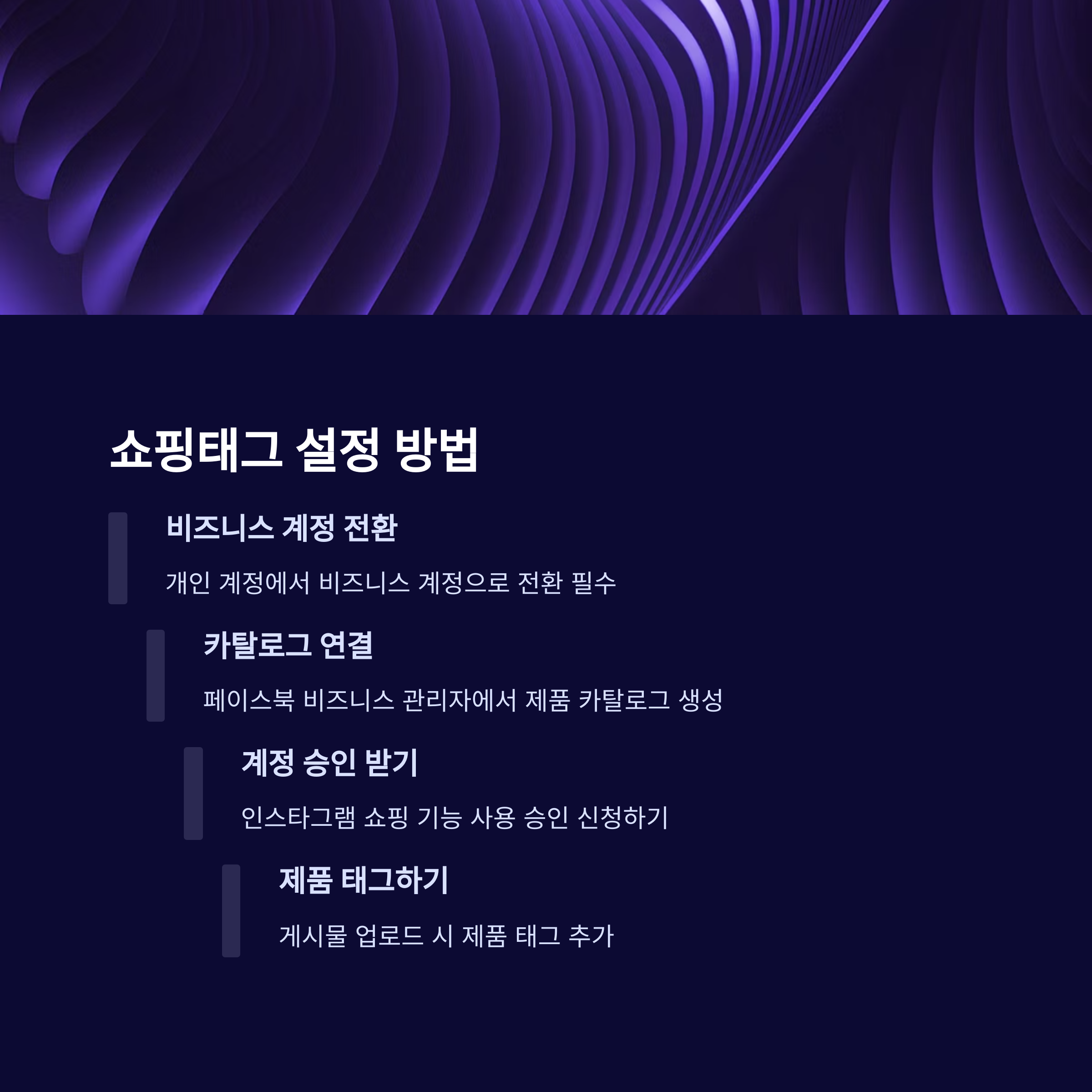 비즈니스 계정 설정, Facebook 상점 등록 등 여러 단계를 거쳐야 쇼핑태그를 사용할 수 있습니다.