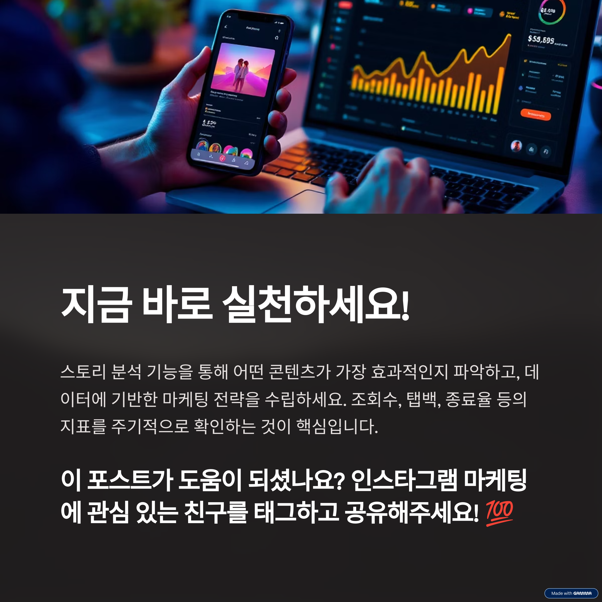 인스타그램의 인사이트 기능을 활용하여 스토리의 도달률, 클릭률, 이탈률 등을 분석하면, 어떤 콘텐츠가 효과적인지 파악할 수 있습니다. 이러한 데이터를 바탕으로 스토리 콘텐츠를 지속적으로 개선하고, 고객의 관심을 끌 수 있는 전략을 수립해야 합니다. 예를 들어, 특정 시간대에 스토리 조회수가 높다면, 그 시간대를 중심으로 콘텐츠를 게시하는 것이 효과적입니다.