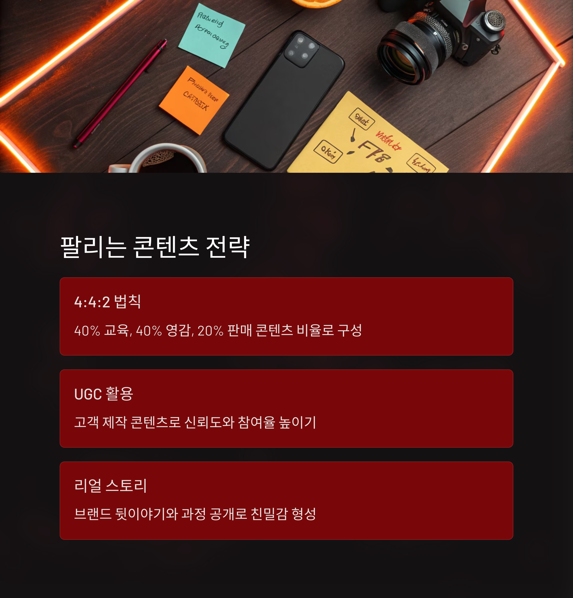 | 후기 & 리뷰 콘텐츠 | 고객 실제 사용 후기 중심 | 신뢰 형성 및 구매 유도 |