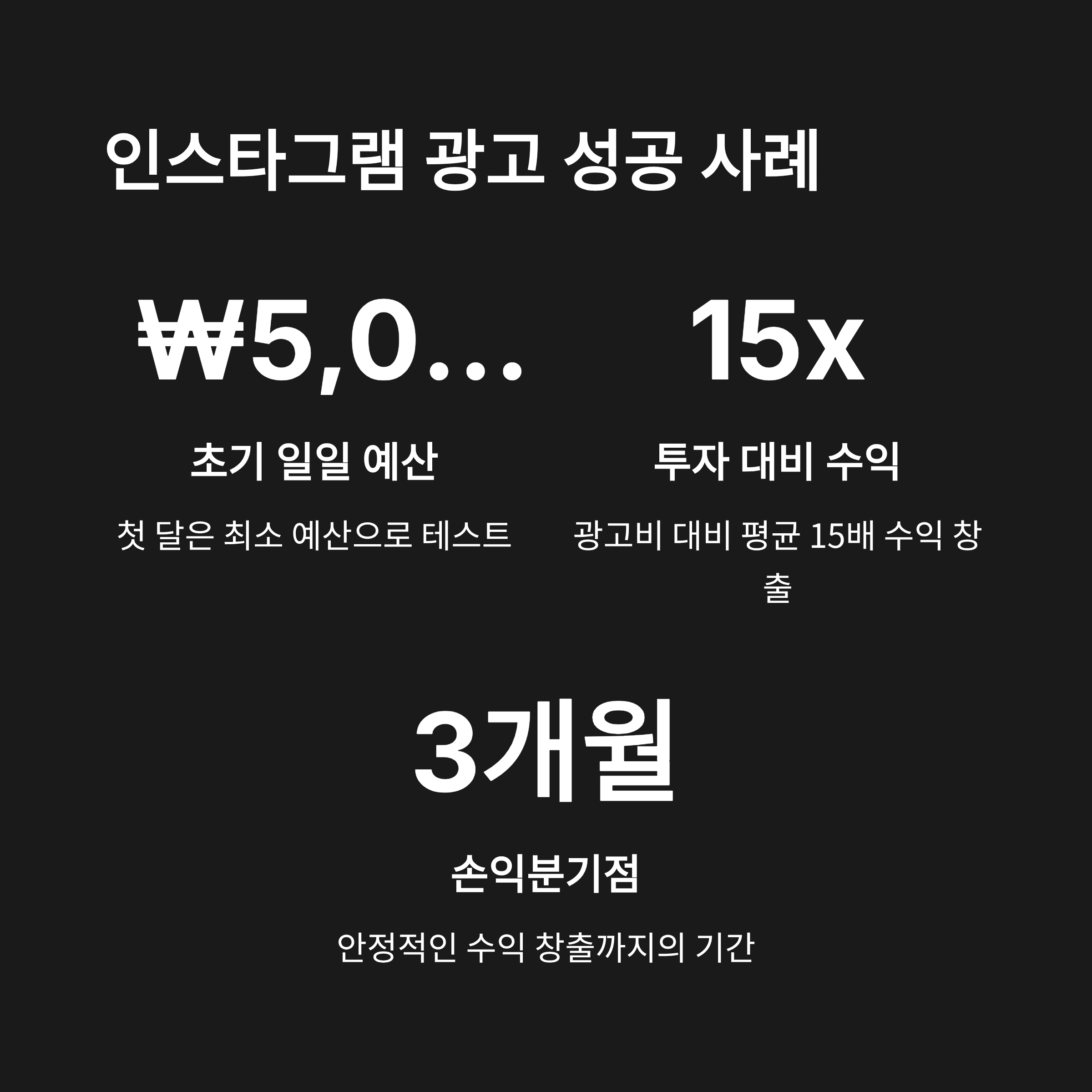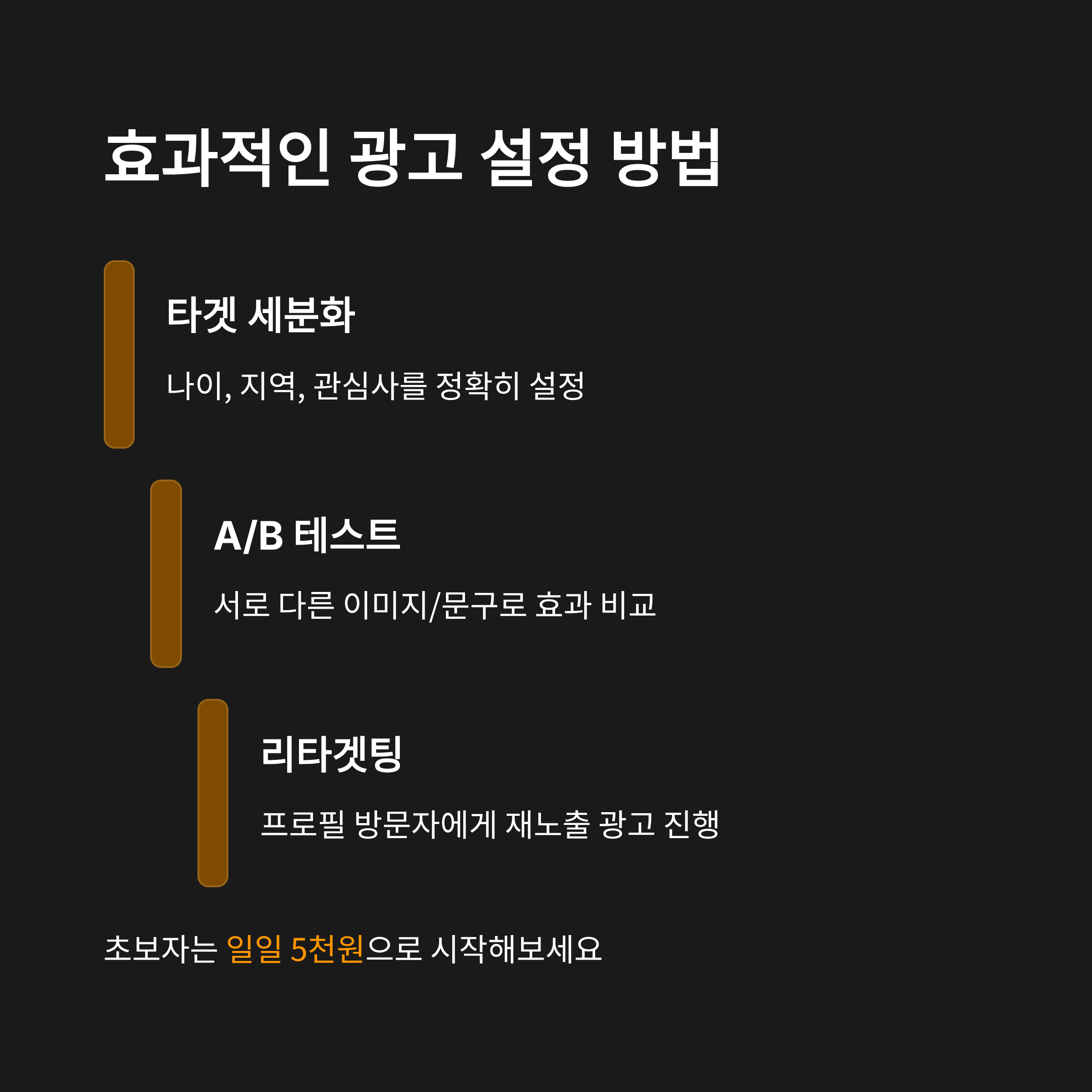 처음에는 적은 예산으로 테스트 광고를 진행했으며, 광고 성과가 좋을 경우 점차 광고 예산을 늘려가며 수익을 극대화할 수 있었습니다. 광고 타겟을 세밀하게 조정하면, 더 많은 잠재 고객에게 다가갈 수 있어 빠르게 수익을 올릴 수 있었습니다.
