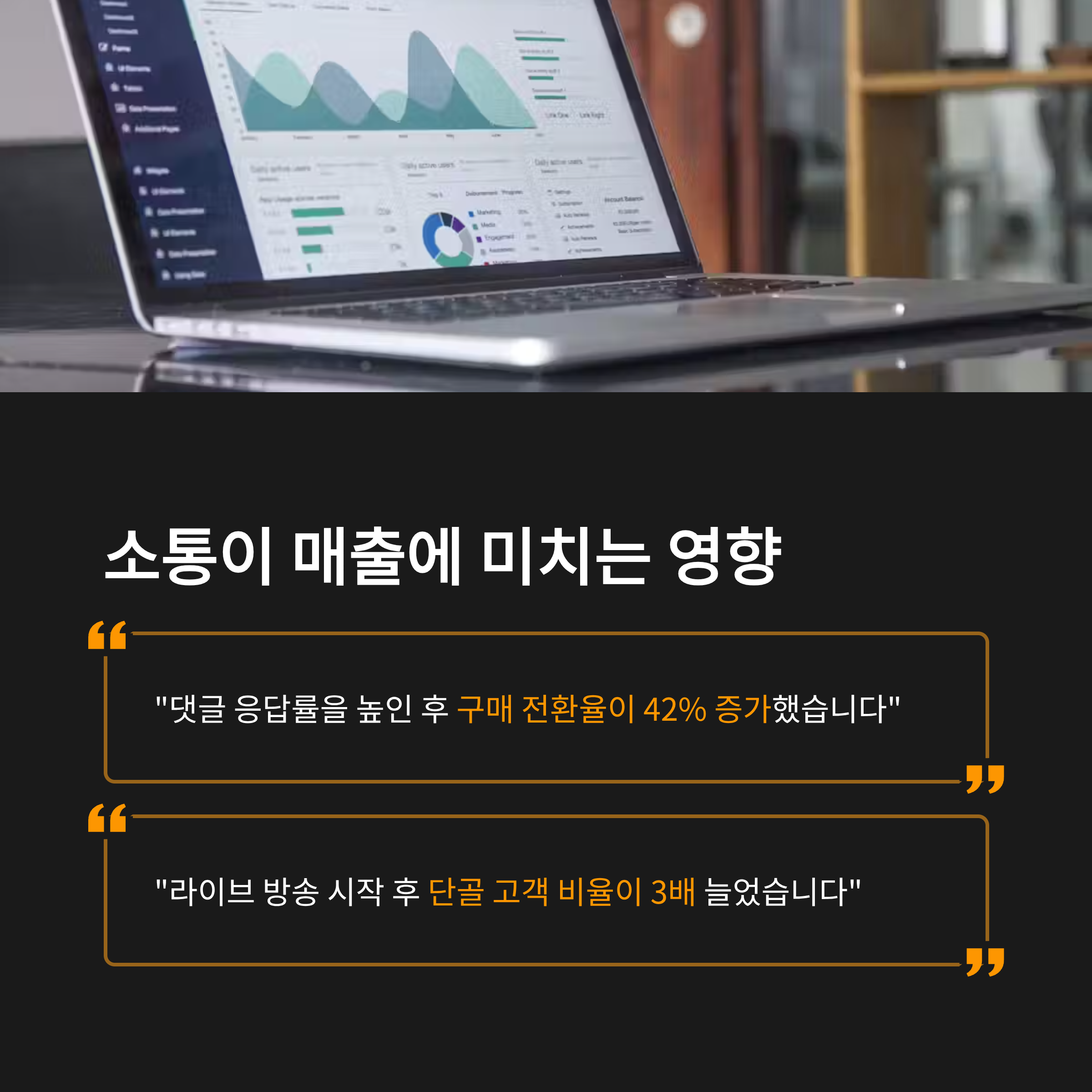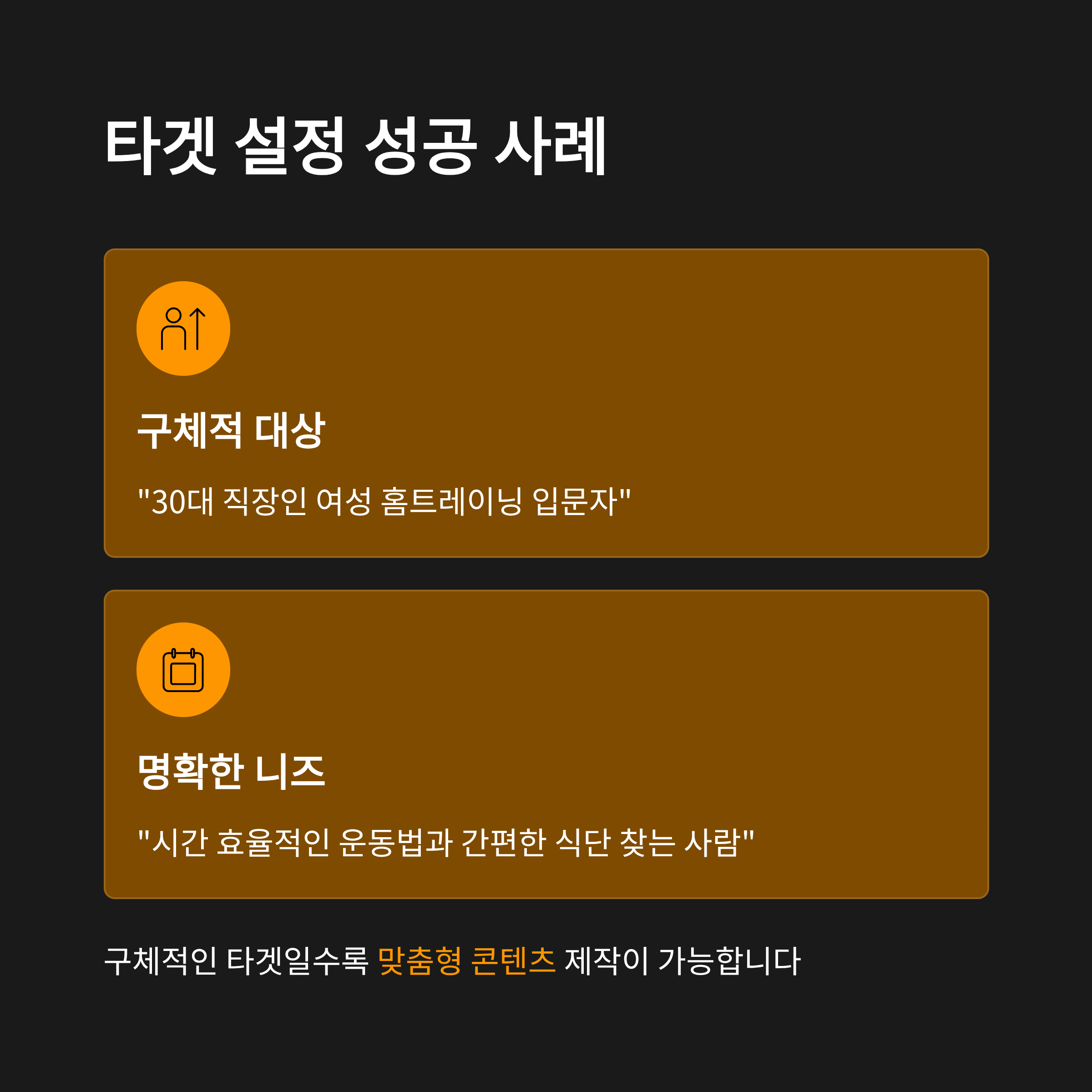 타겟 시장을 좁히는 것은 효율적인 광고와 맞춤형 콘텐츠 제작에 큰 도움이 됩니다. 그렇게 타겟을 설정하고, 그들이 좋아할 콘텐츠를 꾸준히 올리며 관계를 쌓아가니, 제품을 홍보할 때도 반응이 빠르고 구매로 이어졌습니다.