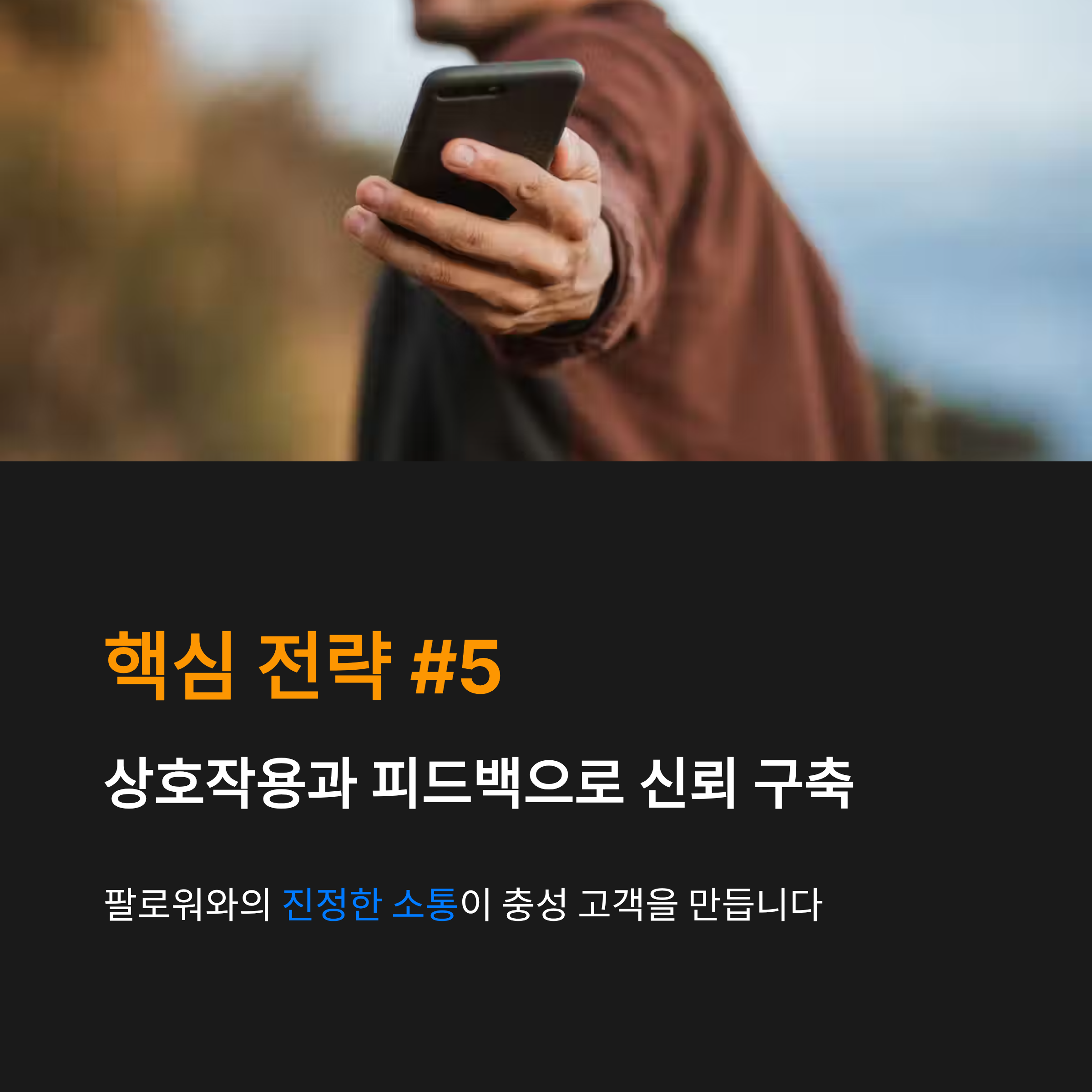 또한, 이벤트나 할인 쿠폰 등을 통해 팔로워들에게 혜택을 제공하면서 관계를 지속적으로 유지할 수 있었습니다. 상호작용과 피드백을 통해 팔로워와의 신뢰가 쌓여가면서, 점차 더 많은 사람들이 제 제품을 신뢰하고 구매하게 되었습니다.