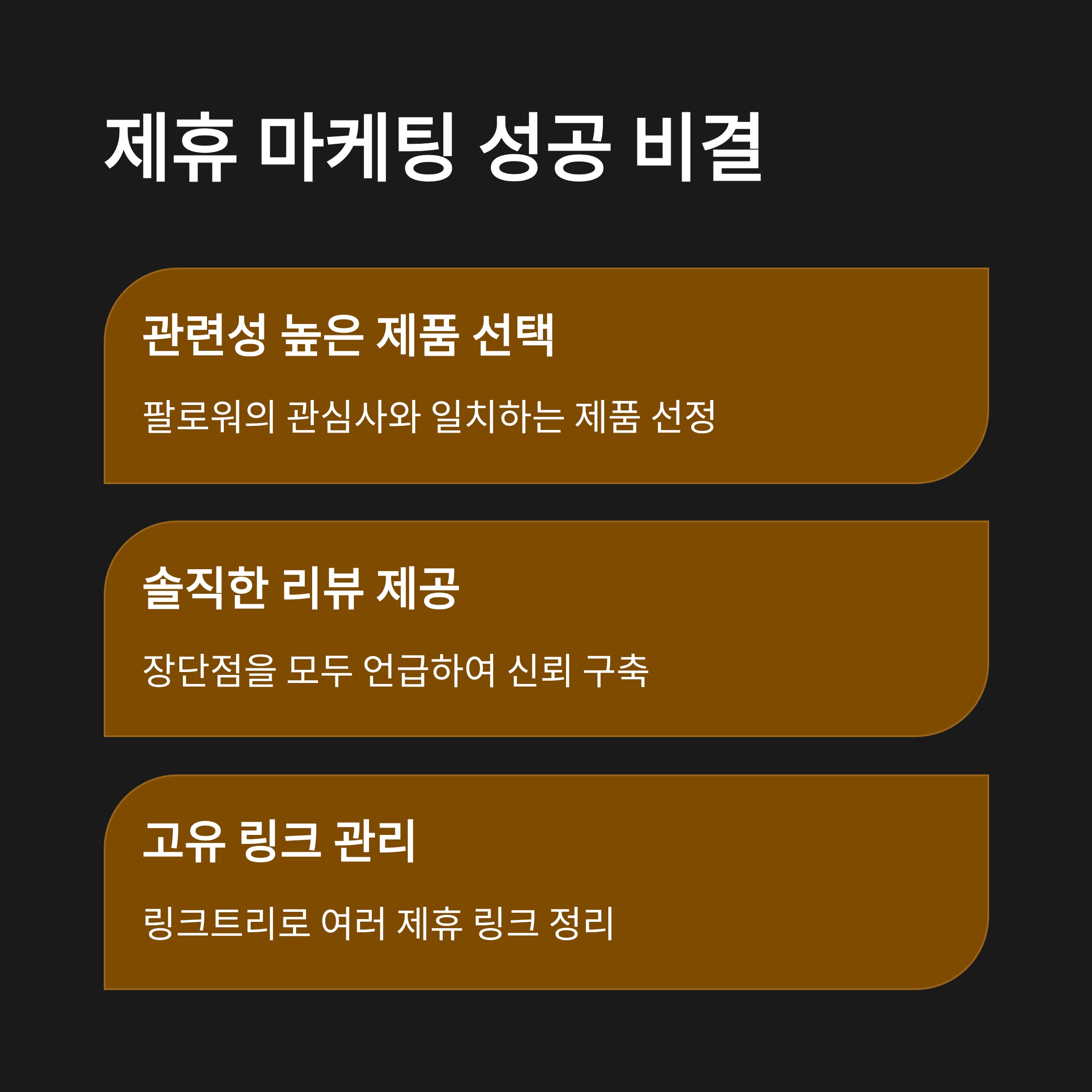 제휴 마케팅은 수익을 두 배로 늘리는 방법이 될 수 있습니다. 저 또한 제휴 마케팅을 통해 자기 제품 외에도 추가적인 수익을 창출할 수 있었고, 광고와 제휴 마케팅을 병행하면서 수익을 다양화할 수 있었습니다.