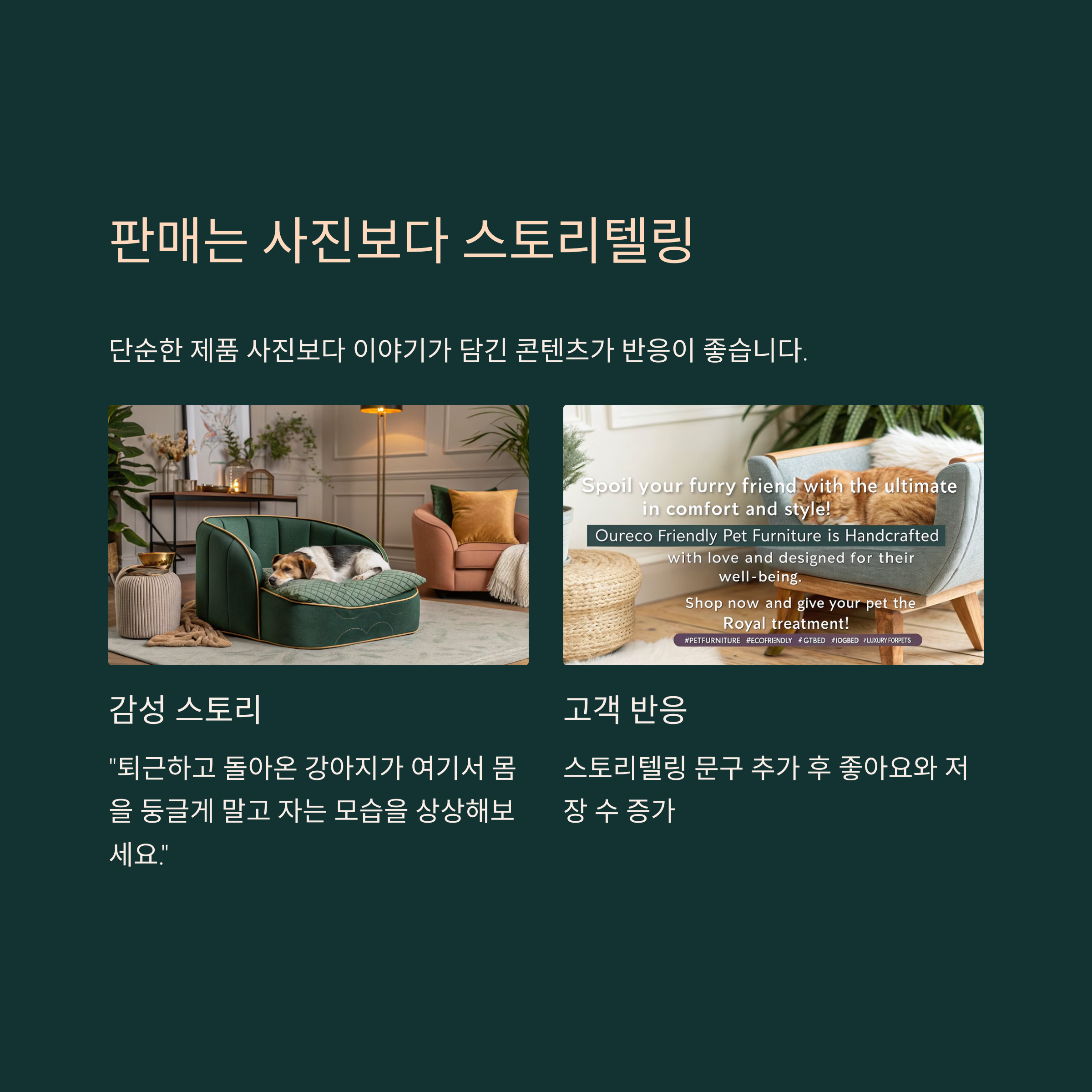 그래서 2주 만에 방향을 바꿔서 ‘소형 반려동물 전용 가구’로 포지셔닝을 다시 했습니다. 타깃이 명확해지니까, 검색 유입도 늘고 DM도 조금씩 들어오기 시작했어요.