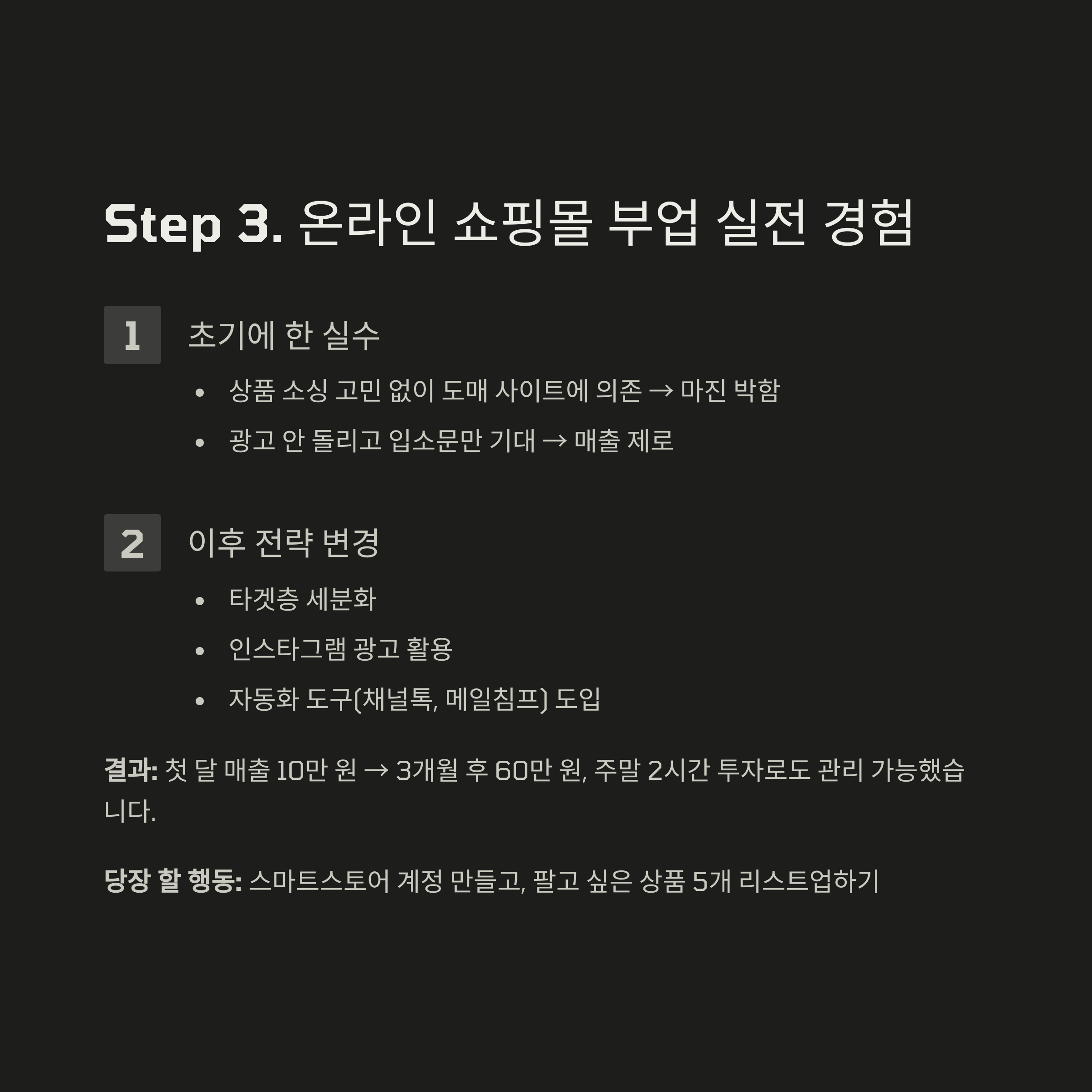 ✅ Step 3. 온라인 쇼핑몰 부업 실전 경험