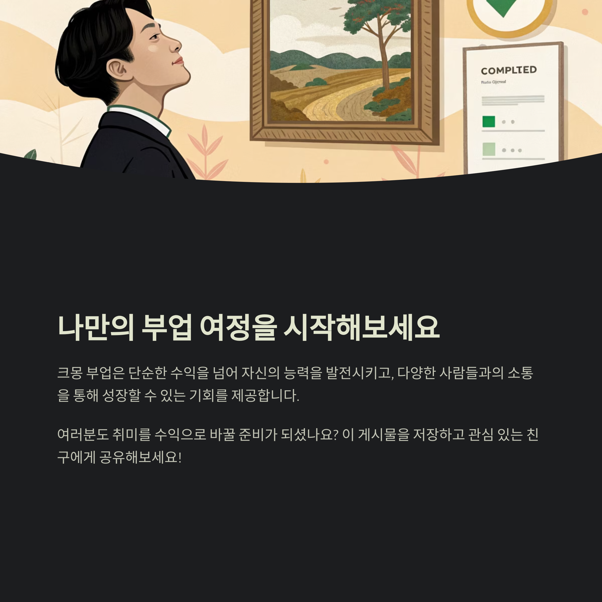 A3: 자신의 재능을 활용하여 부업을 시작하는 것은 좋은 선택입니다. 하지만, 초기에는 수익보다는 경험을 쌓는 데 집중하는 것이 좋습니다.