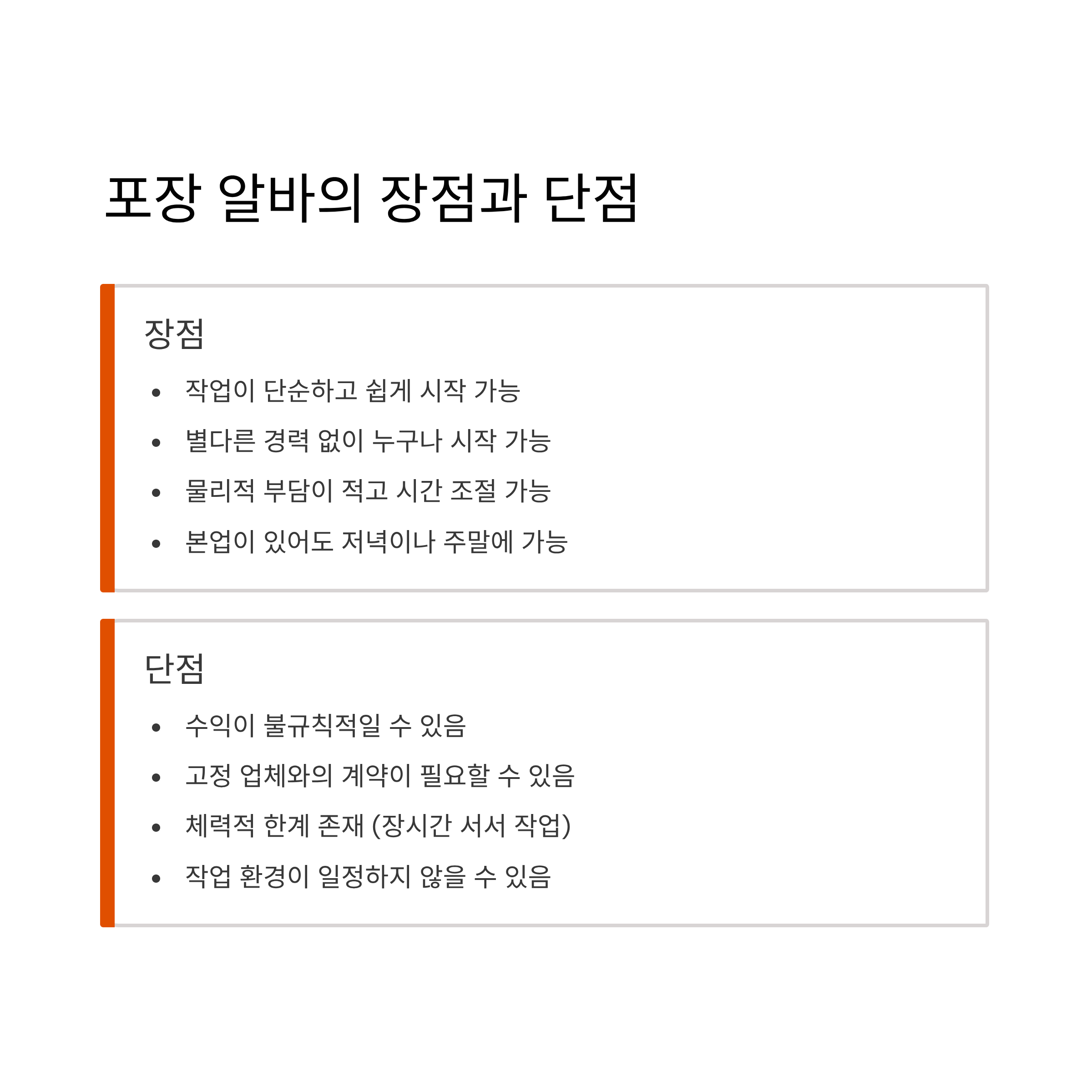 비교표: 포장 알바 장단점