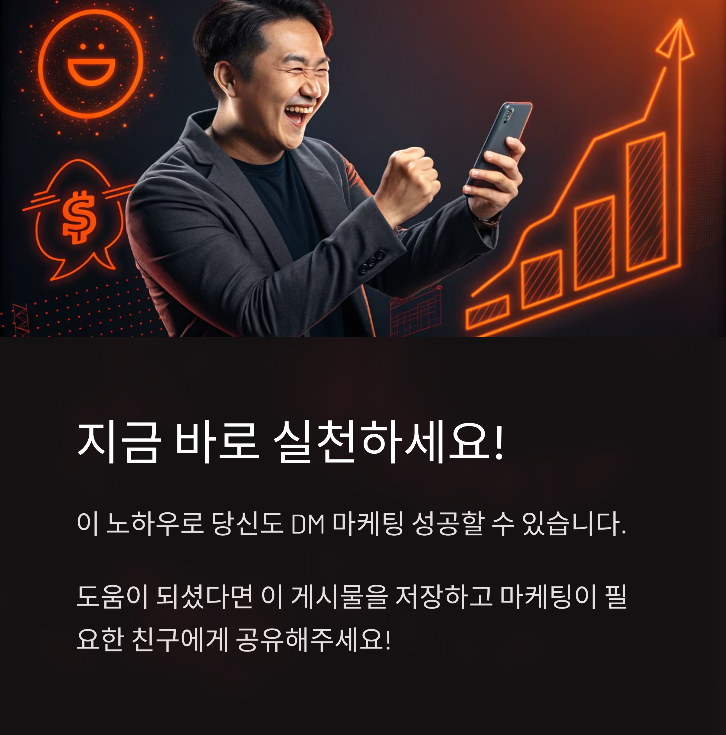 자, 이제 여러분의 차례입니다. DM을 통해 수익을 올리고 싶다면 오늘부터 바로 실행해보세요.