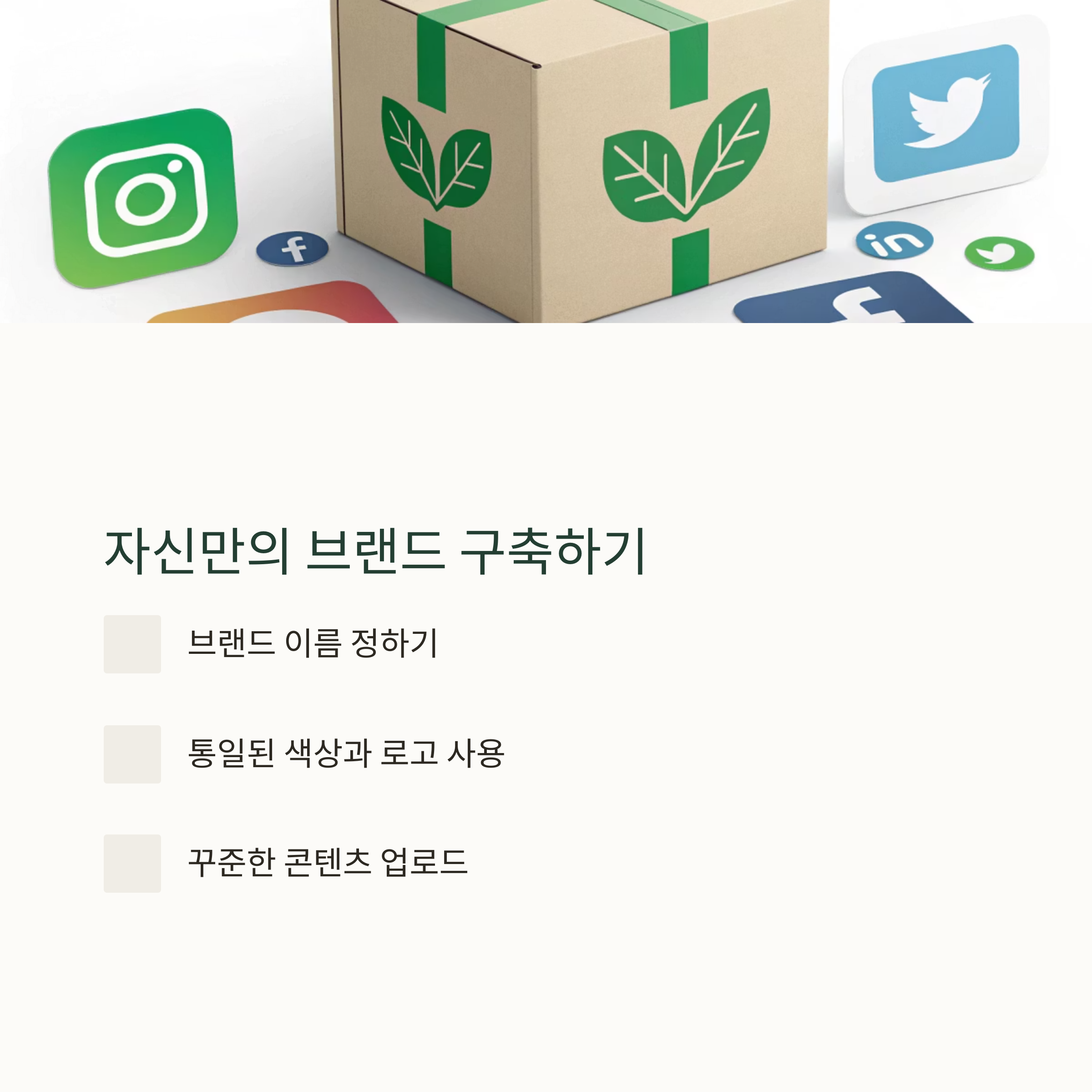 브랜드 이름을 정하고, SNS 계정을 만들고, 통일된 색상과 로고를 사용하는 것이 기본입니다. 고객은 브랜드에 대한 신뢰가 있어야 그들의 포장을 맡길 수 있기 때문에, 꾸준한 컨텐츠 업로드와 고객 후기를 공유하는 것이 중요합니다.